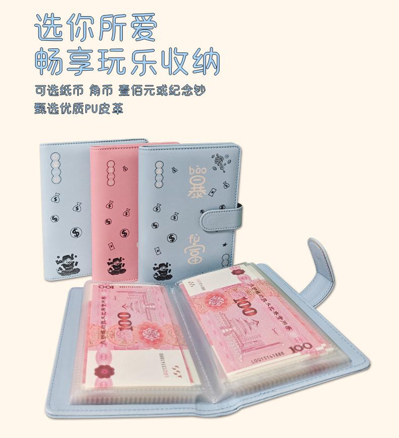 Sky blue coin storage book [can hold 100 sheets], Water powder coin storage book [can hold 100 sheets]