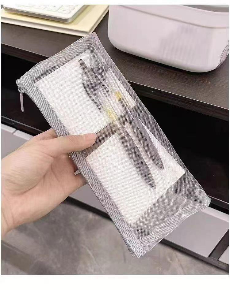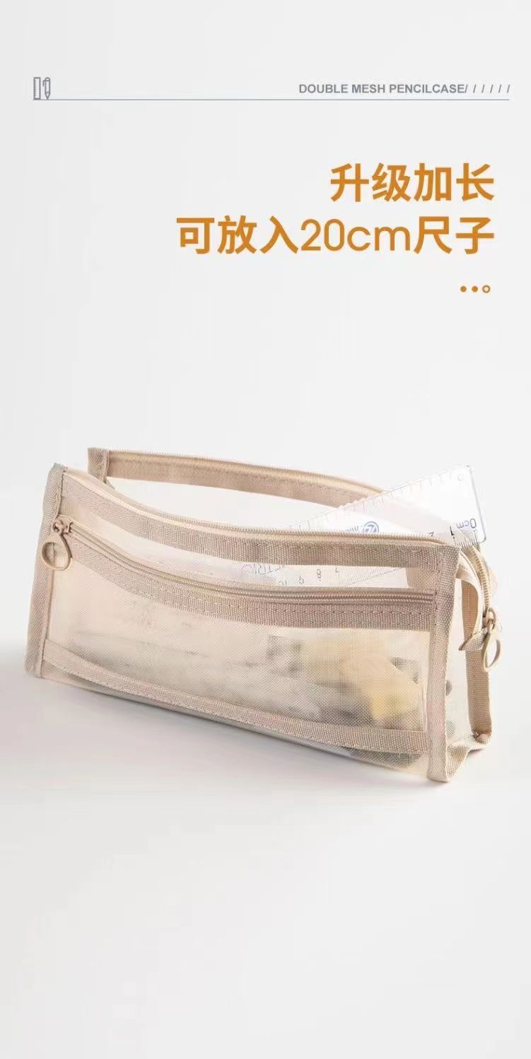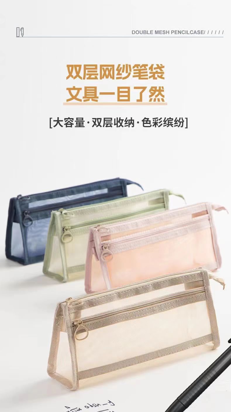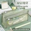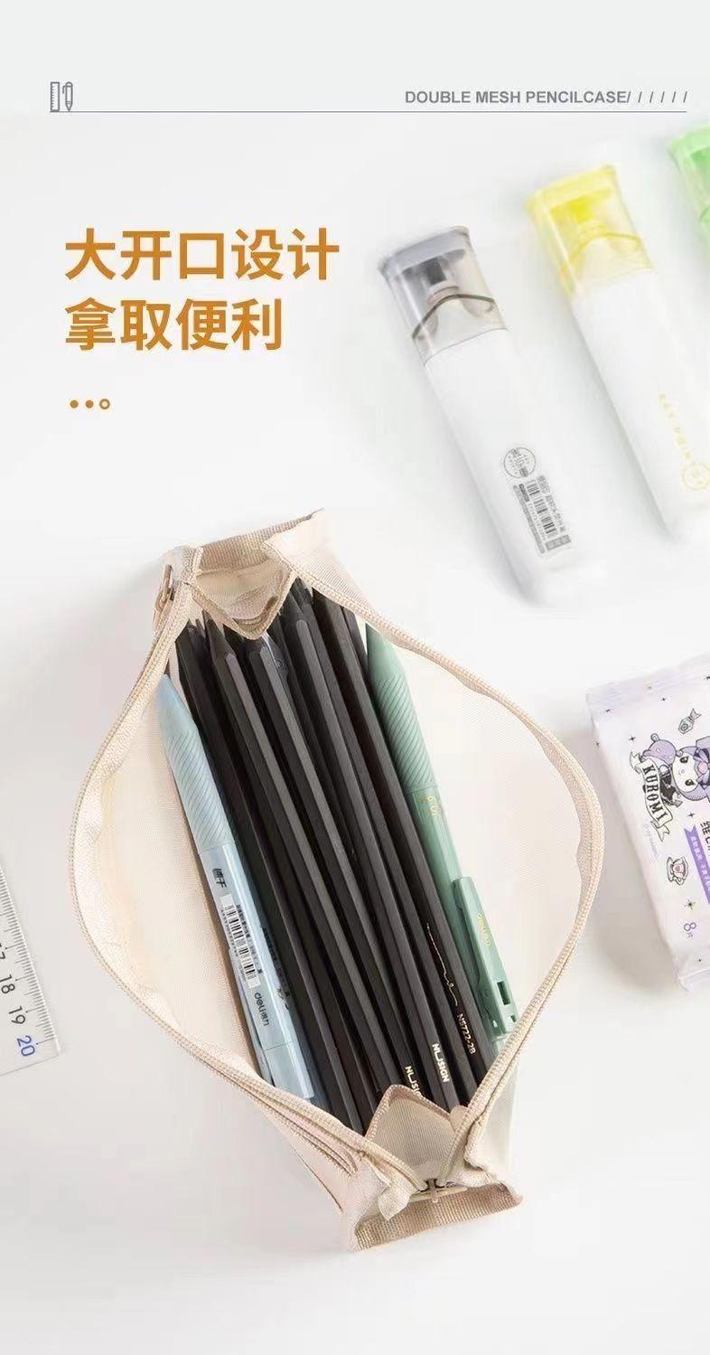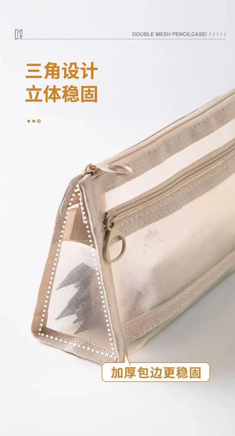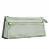 Bolsa de papelería de doble capa de gran capacidad, bolsa de lápices triangular de malla transparente, color Morandi simple, bolsa de examen para estudiantes de alto valor de color