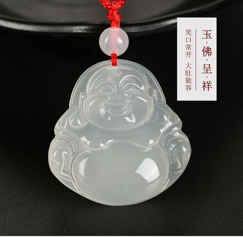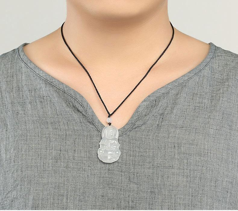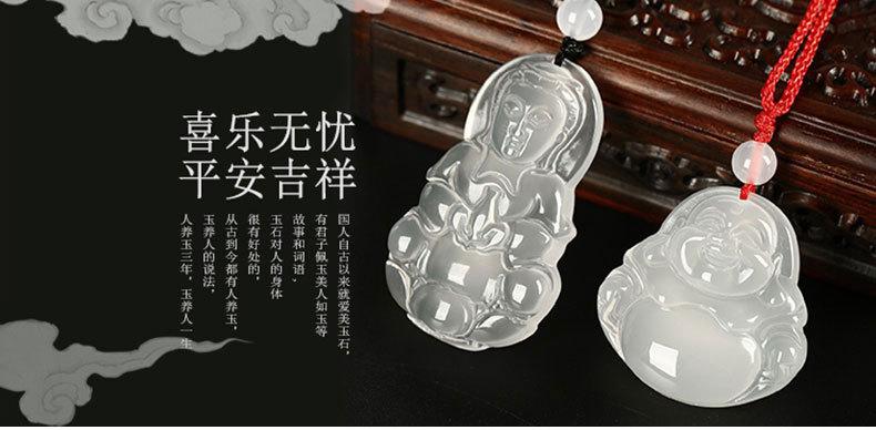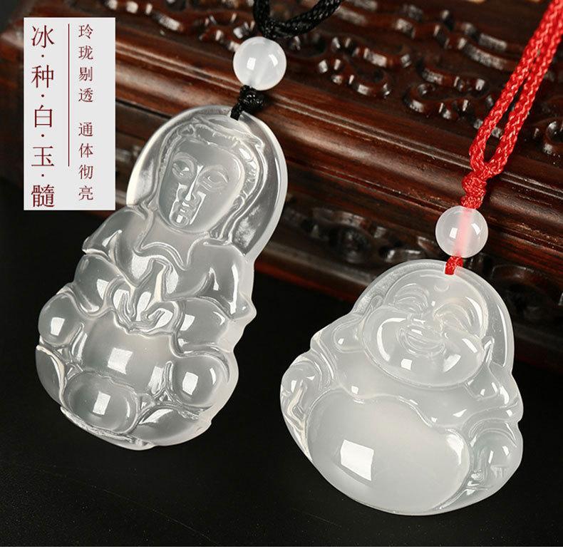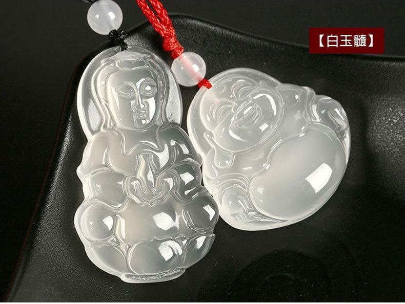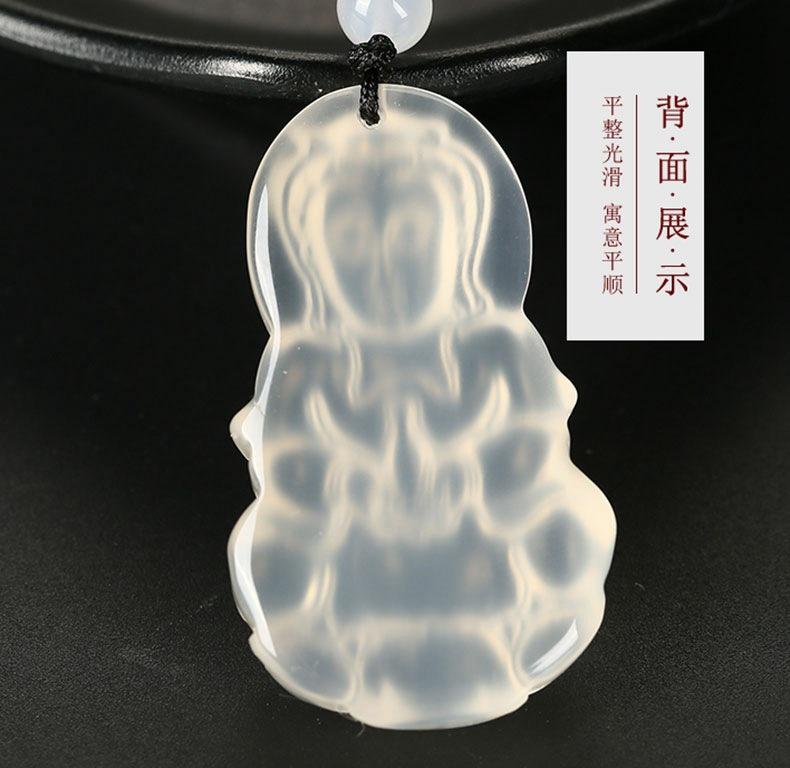 Colgante de Calcedonia Blanca Hielo Chumu Colgante de Guanyin Calcedonia Hielo para Hombre y Mujer Adorno Colgante de Buda Guanyin Venta al por Mayor