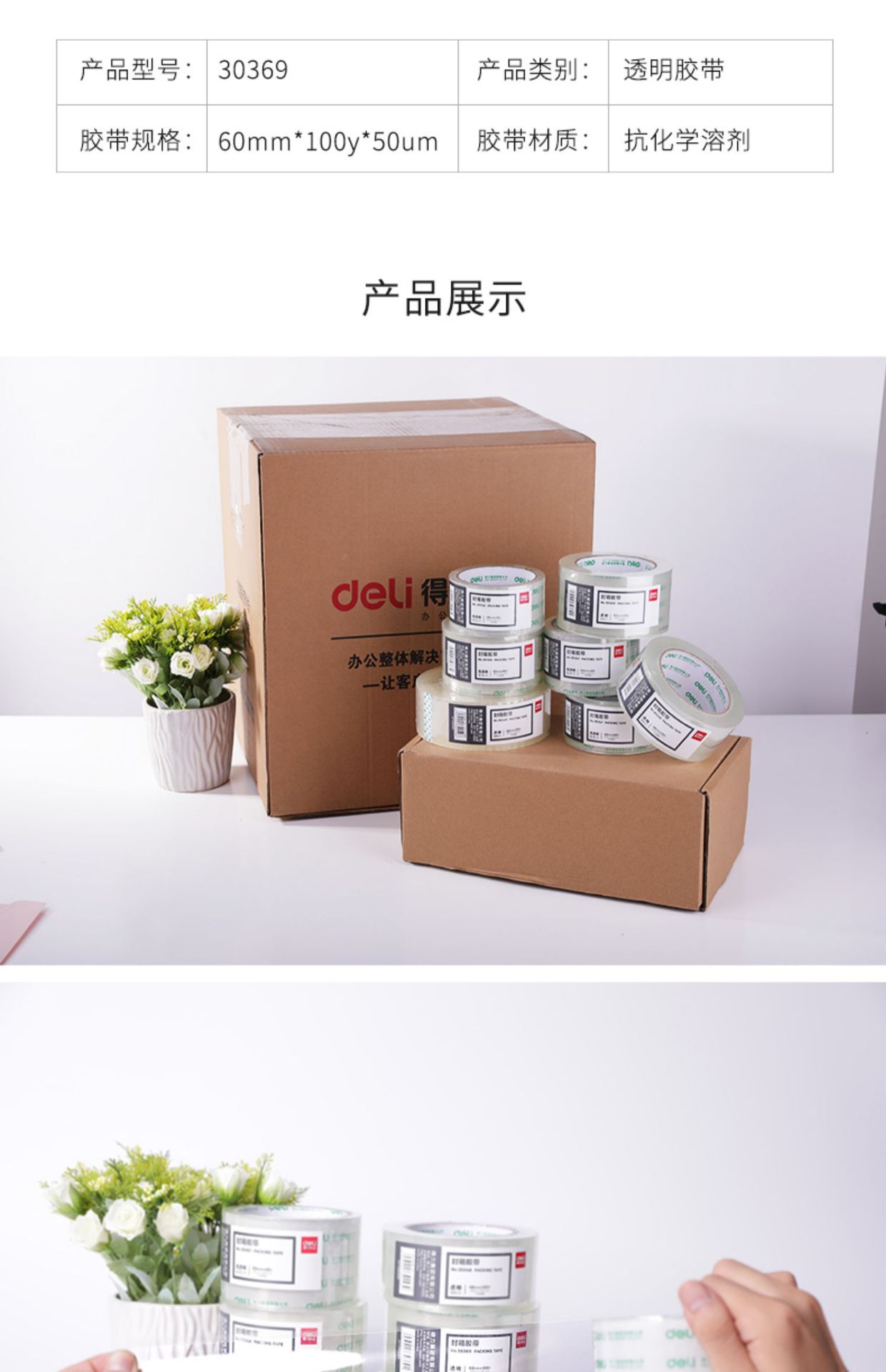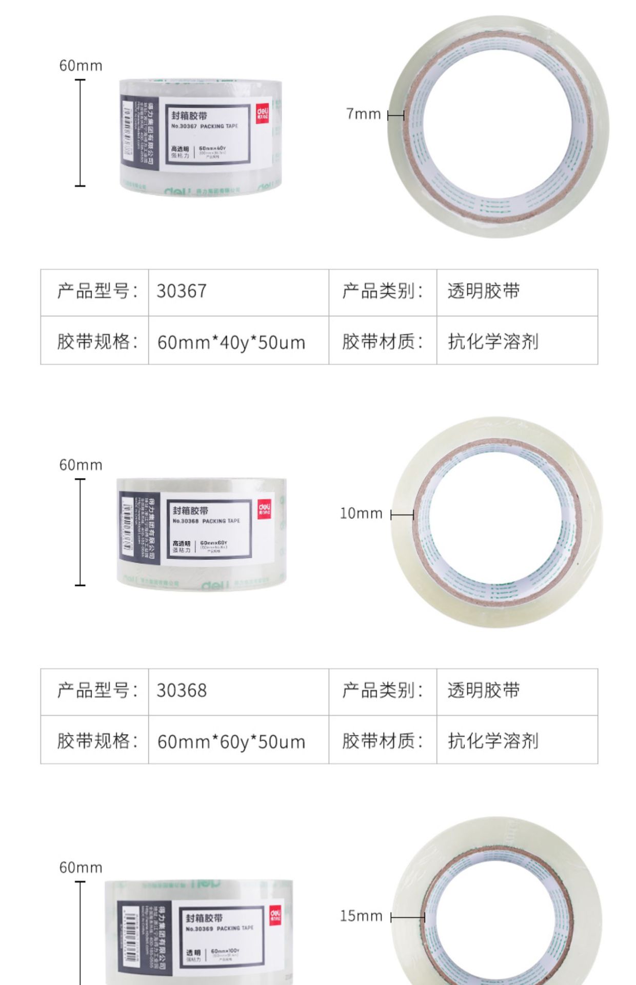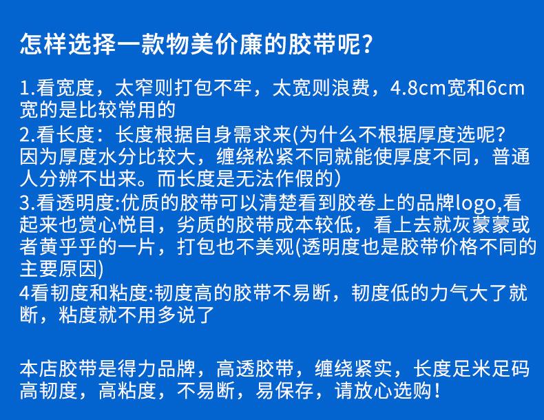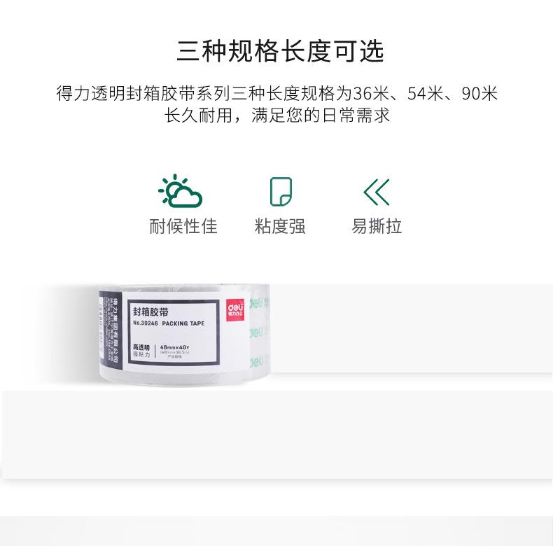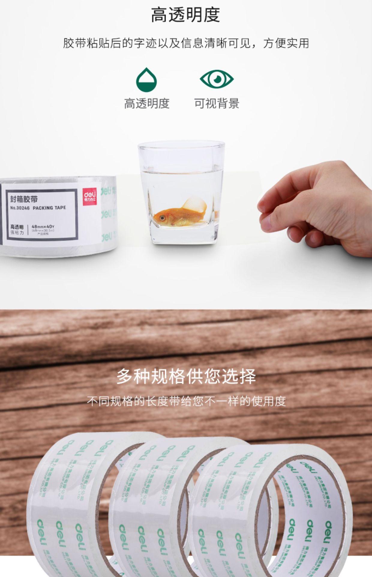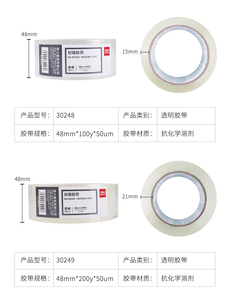 Cinta de embalaje Deli 30247 de 48 mm x 60 yardas, transparente, para sellar, exprés, suministros de oficina, venta al por mayor