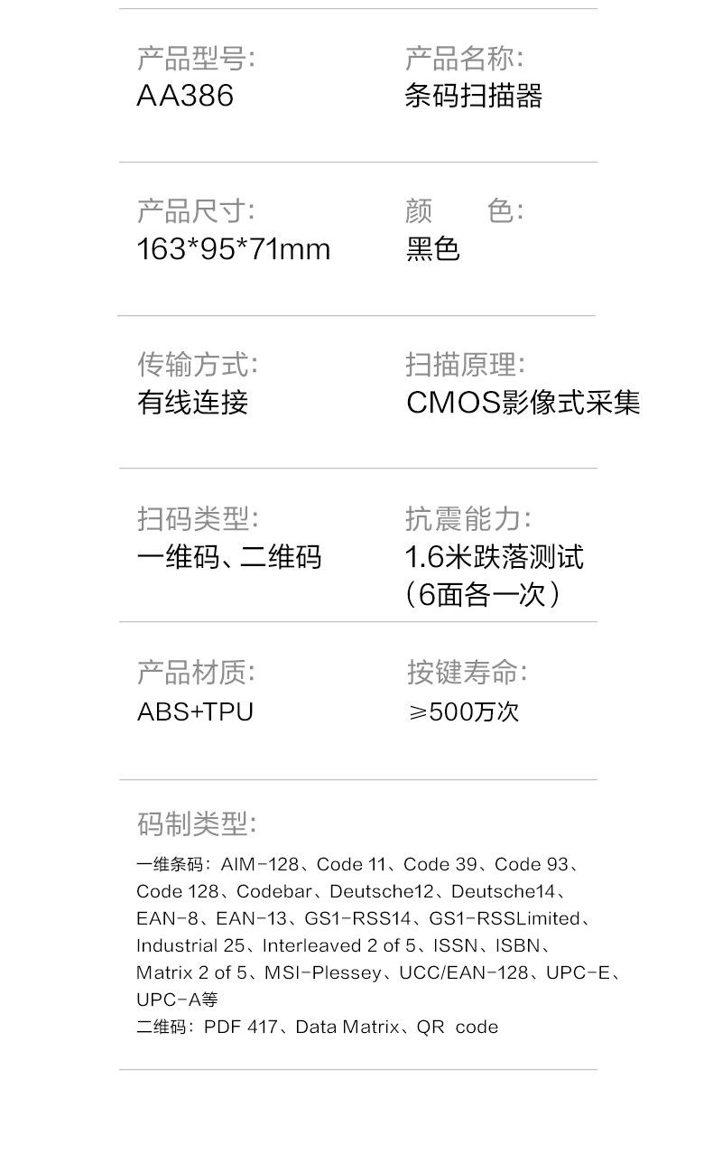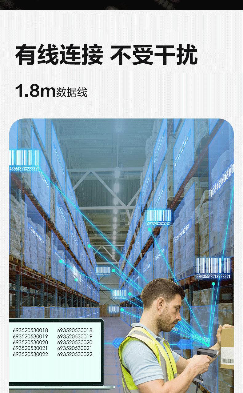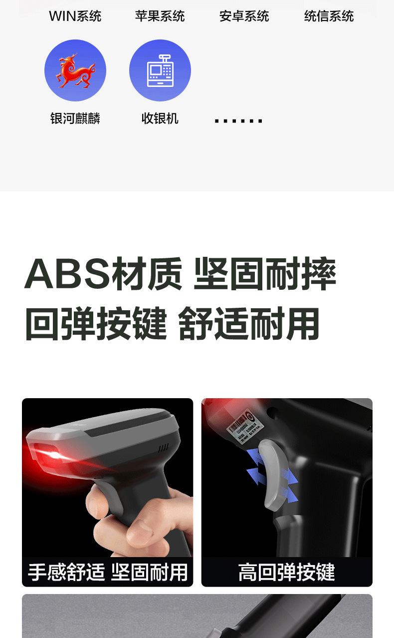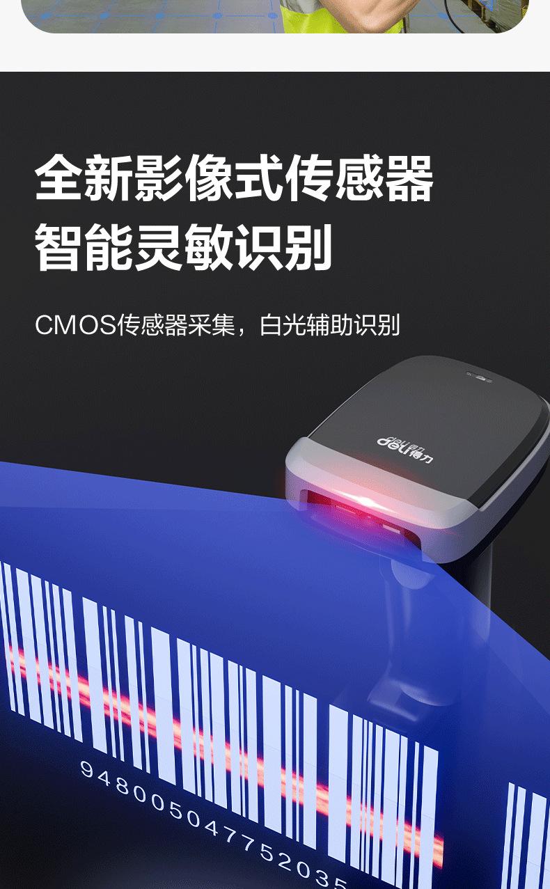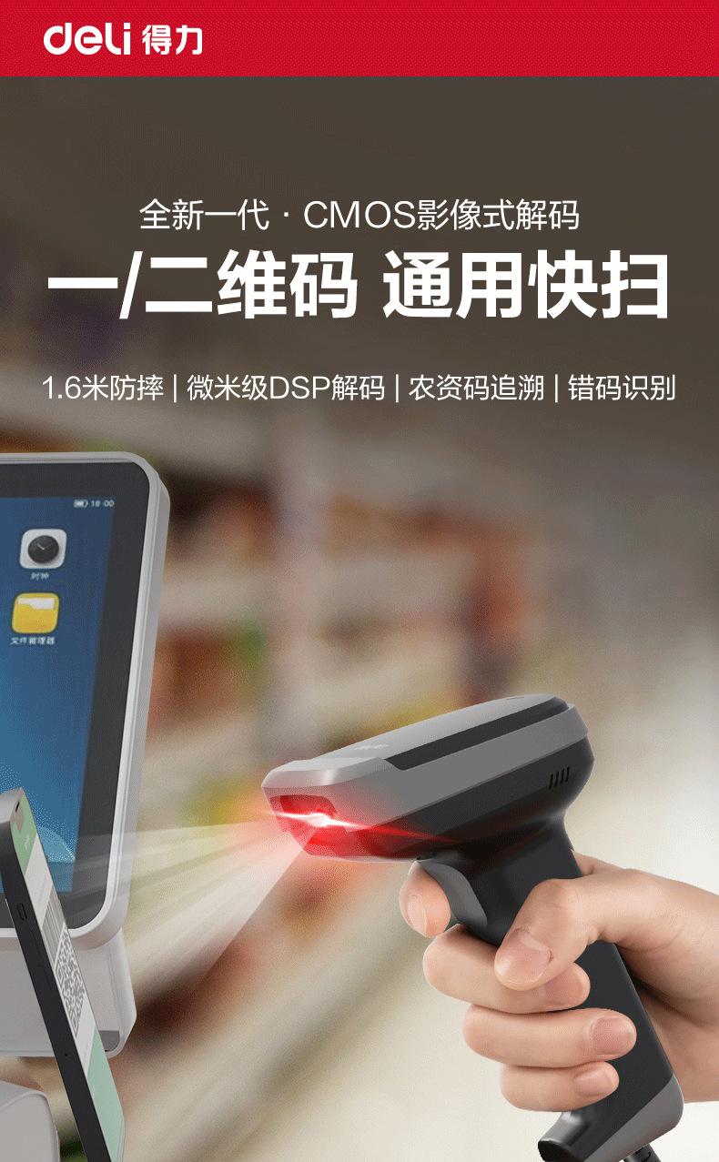 Escáner de código de barras Deli AA386, escáner Bluetooth, escáner láser portátil inalámbrico con cable, pistola de escaneo, almacenamiento exprés