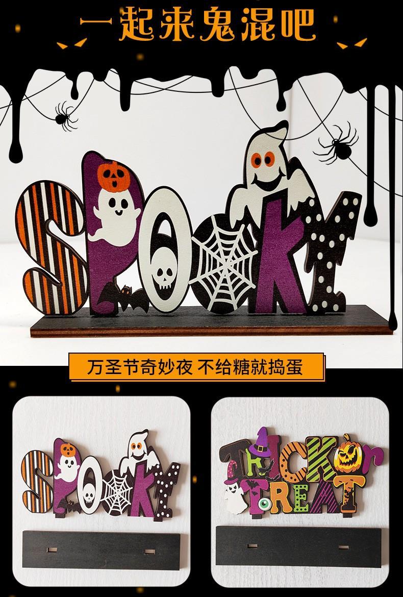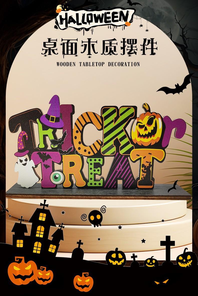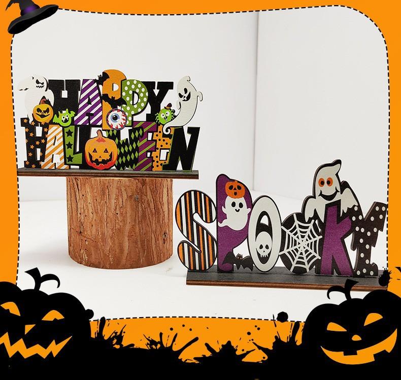 Artesanías de madera para Halloween, decoración de ambientes con letras de base, adornos de escritorio para casa embrujada, adornos para decoración del hogar