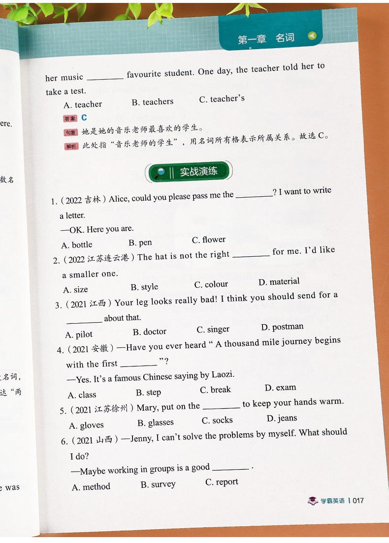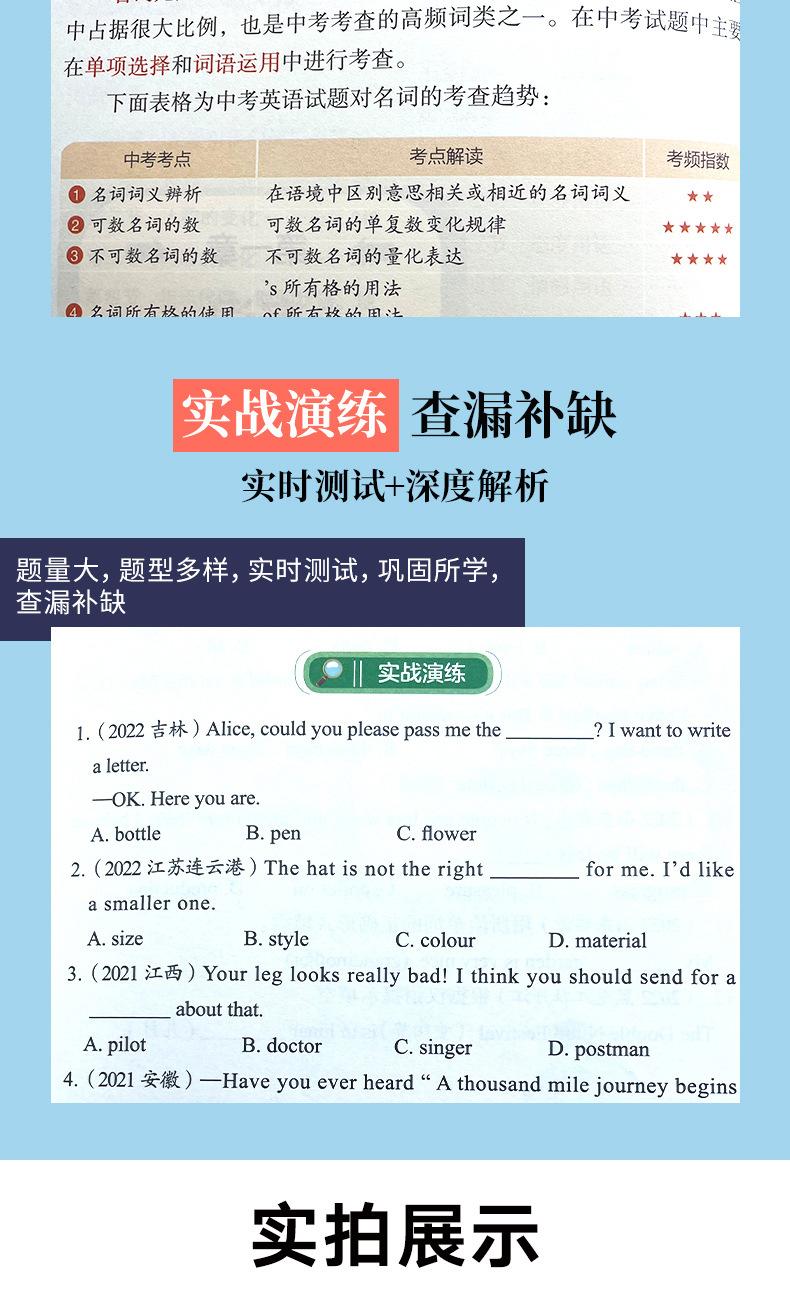 Artefacto de recitación de palabras de vocabulario de inglés de secundaria, libro de práctica de gramática de comprensión de lectura y cloze fácil de recitar