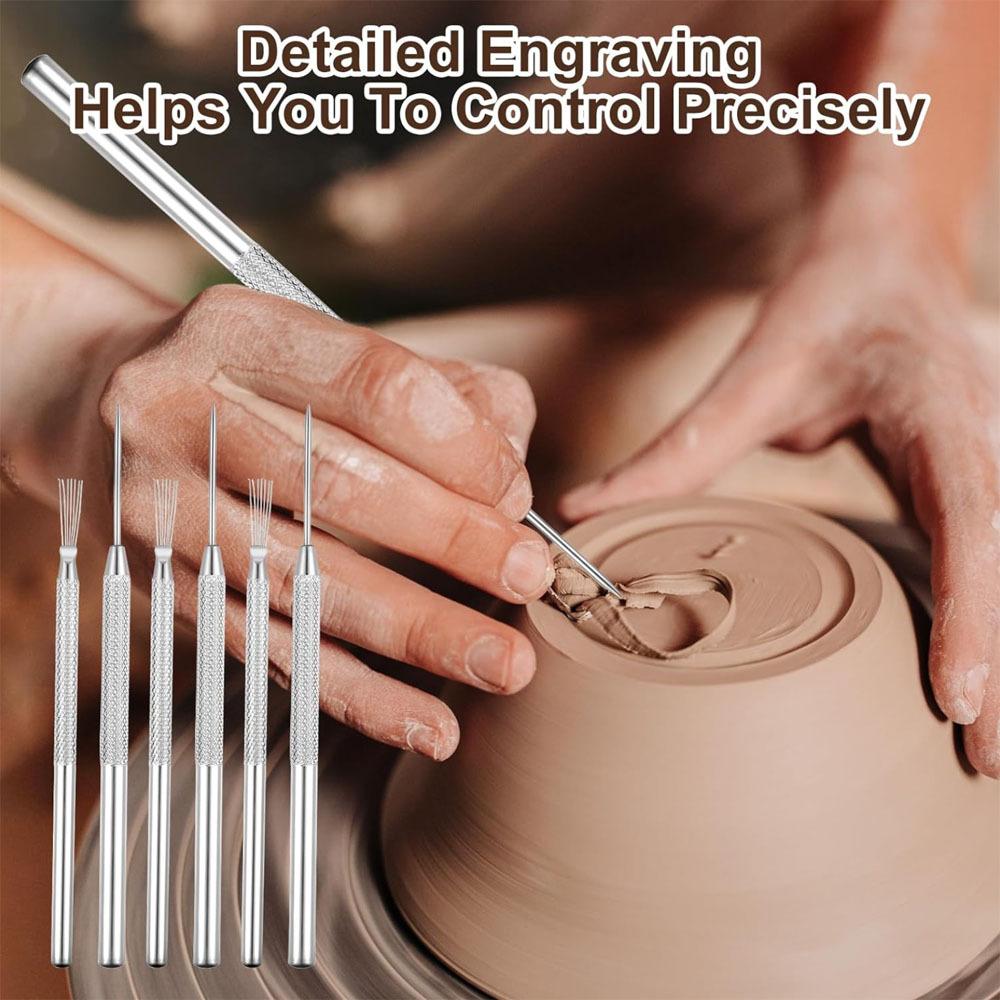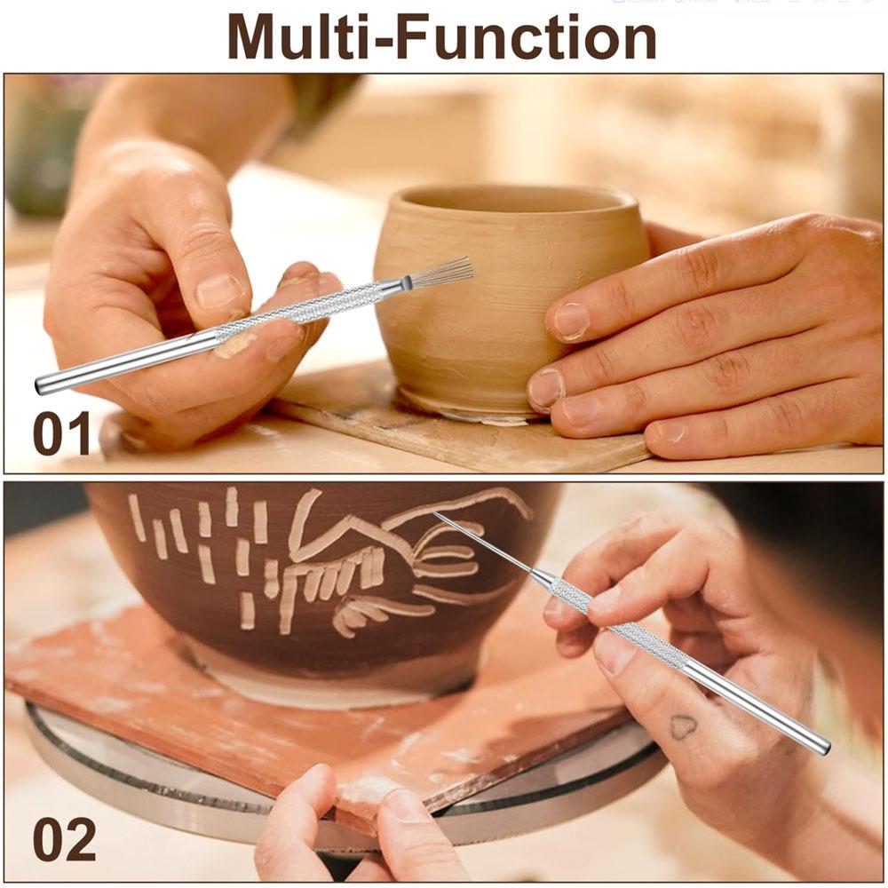 Herramienta de arcilla de cepillo de aluminio de 2 piezas con detalle de siete agujas, herramienta de arcilla, arcilla blanda, herramienta auxiliar de modelado, herramienta de escultura