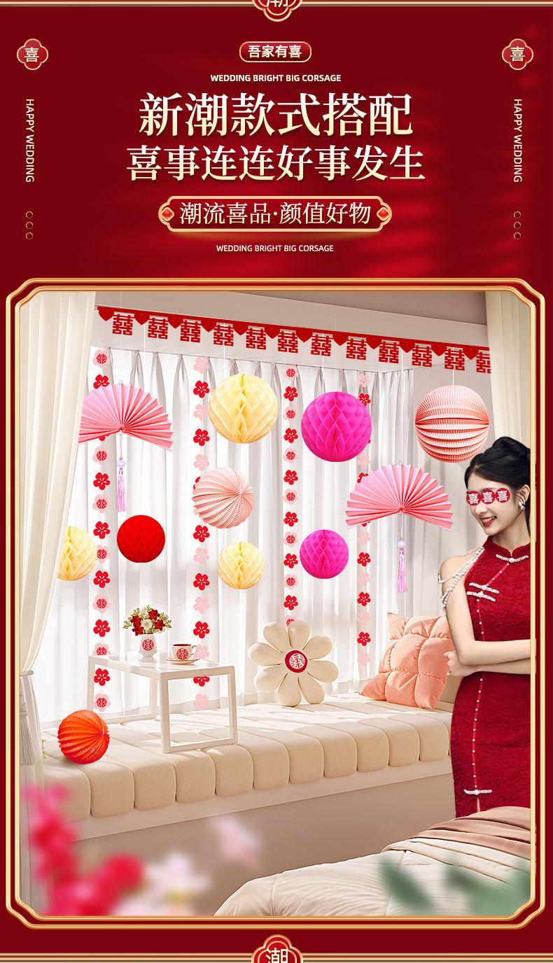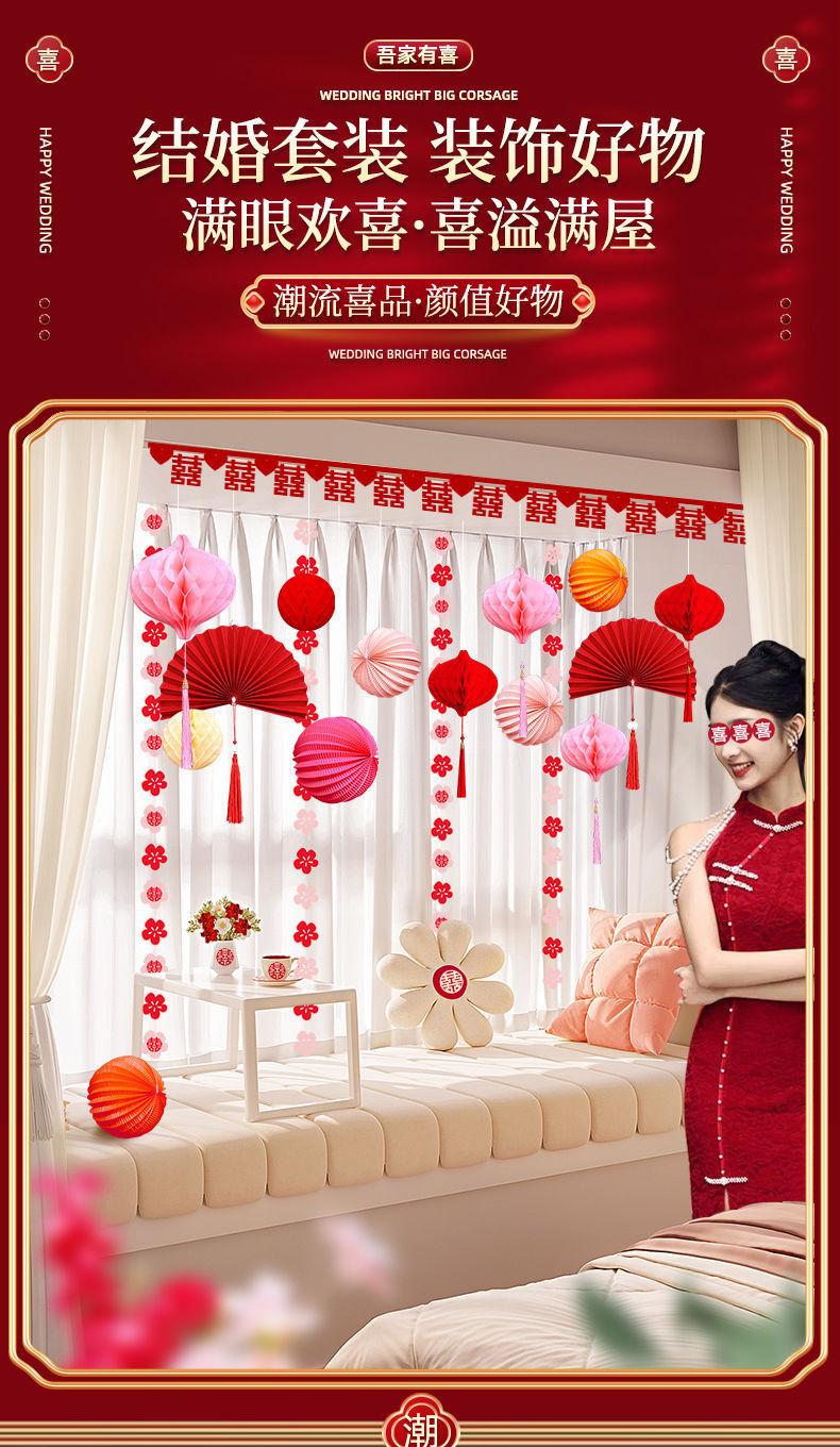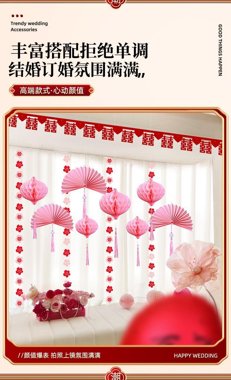 Diseño de sala de bodas adecuado para la boda de un hombre y una mujer, nueva casa, dormitorio, sala de estar, cortina, decoración floral, colgante de boda