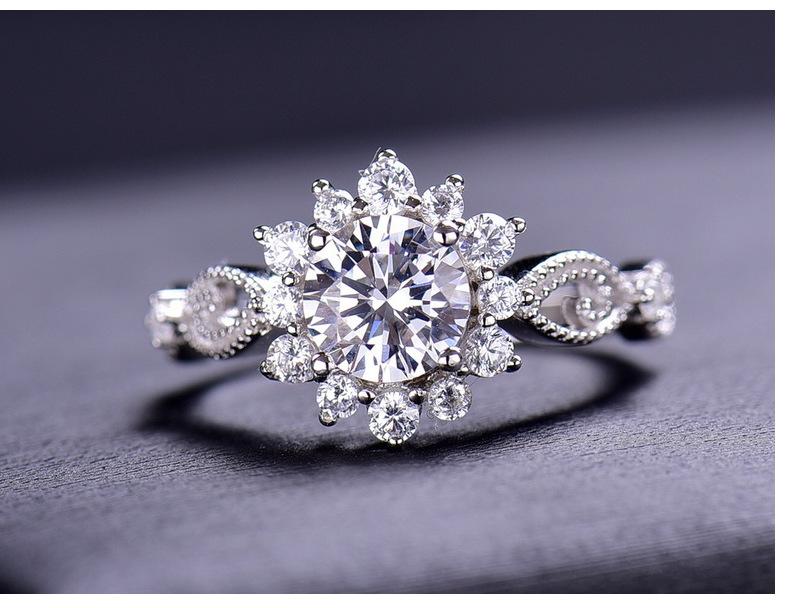 Anillo de plata 925 para mujer, moda para todo tipo de combinaciones, temperamento, 1 quilate, color D, claridad FL, anillo de moissanita, joyería de plata al por mayor