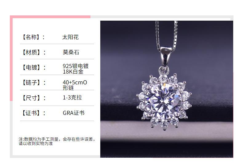 Colgante de moissanita para mujer, color D, claridad FL, collar de moissanita, colgante de girasol