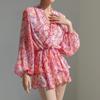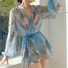 2024 Verano Nuevo Artístico Retro Holgado Adelgazante Cuello en V Verde Fresco Raya Vertical Vestido Bata Mujer