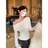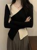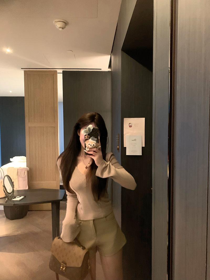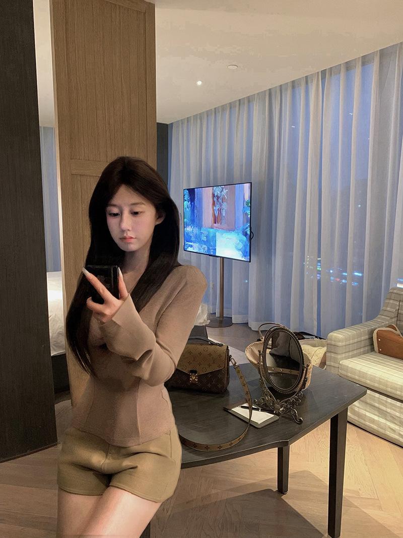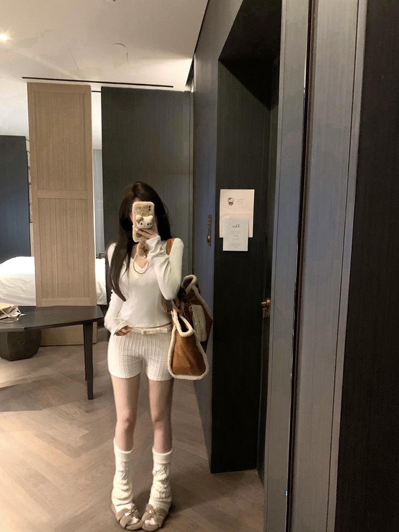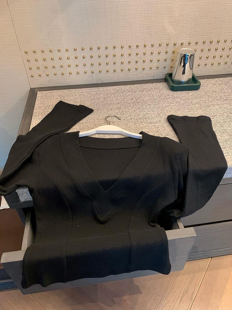 Camiseta básica de cachemira estilo casual 2024 invierno nueva delgada ajustada cuello en V manga larga top de mujer tendencia chic