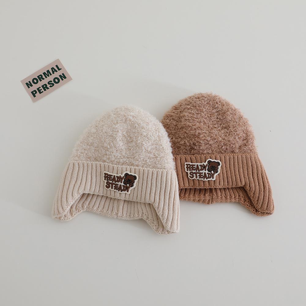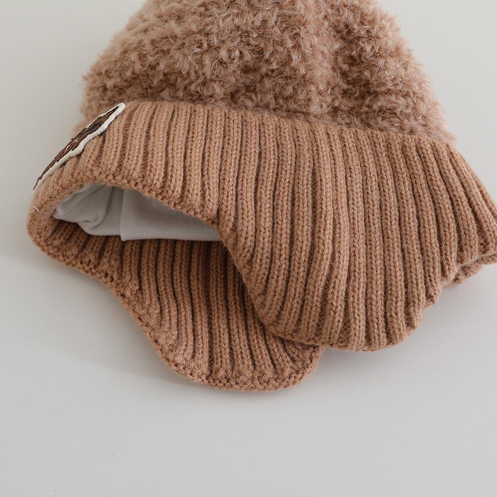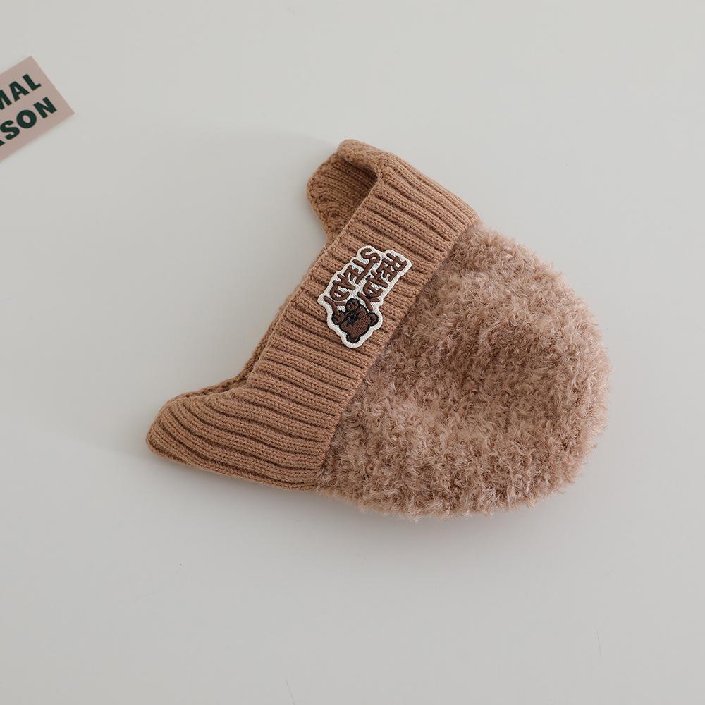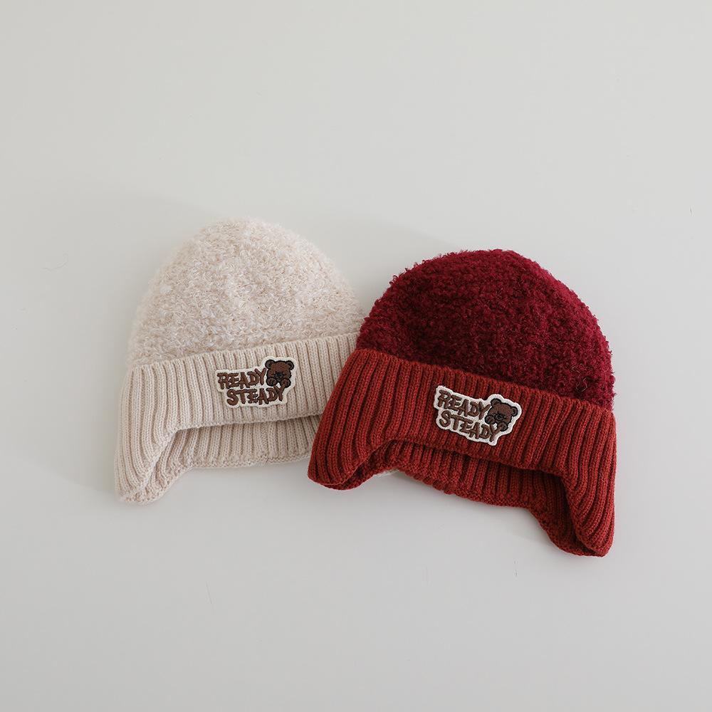 Nuevo gorro de punto de invierno para niños con letras de oso de peluche de algodón, gorro protector para los oídos, gorro cálido para niños y niñas de 2 a 7 años