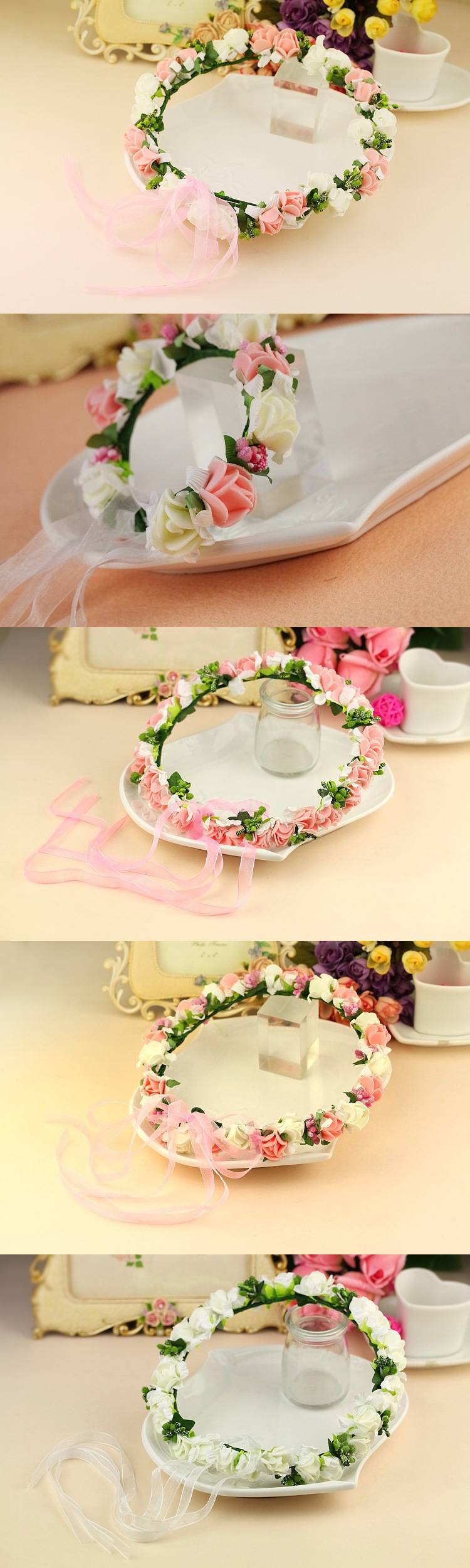 Diámetro interior de la diadema: aproximadamente 17 cm Longitud estirada: aproximadamente 50 cm, la cinta en la parte posterior se puede ajustar en tamaño