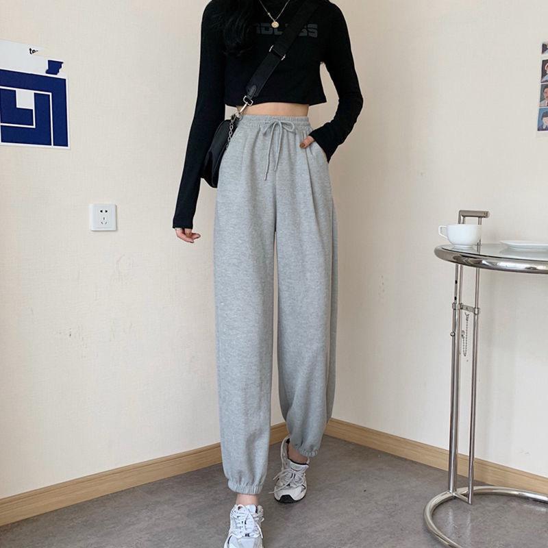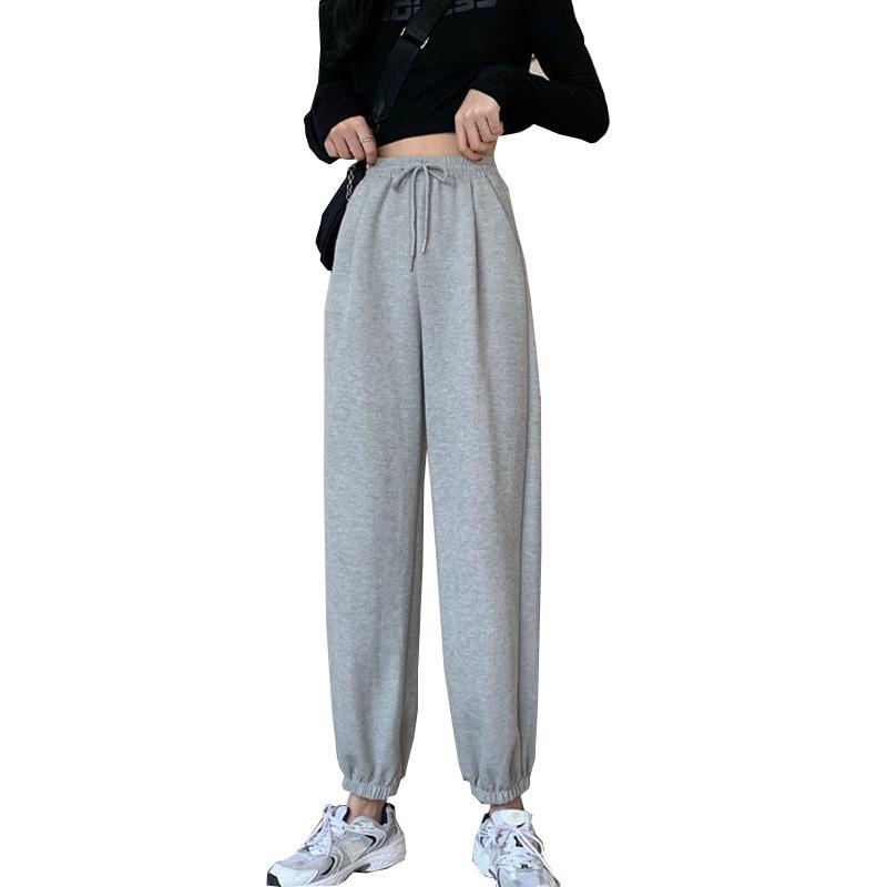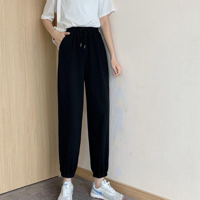 Pantalones deportivos estilo harén de cintura alta con tobillos atados al estilo coreano para mujer, pantalones deportivos holgados y adelgazantes con cintura elástica para primavera y otoño para nuevas estudiantes.