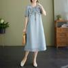 Vestido informal sencillo de verano 2024, nuevo, de algodón y lino, estilo étnico artístico, bordado, suelto, de manga corta para mujer