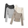 Suéter ajustado con hombros descubiertos y manga larga para mujer, otoño 2024, nuevo estilo, top informal con hombros descubiertos
