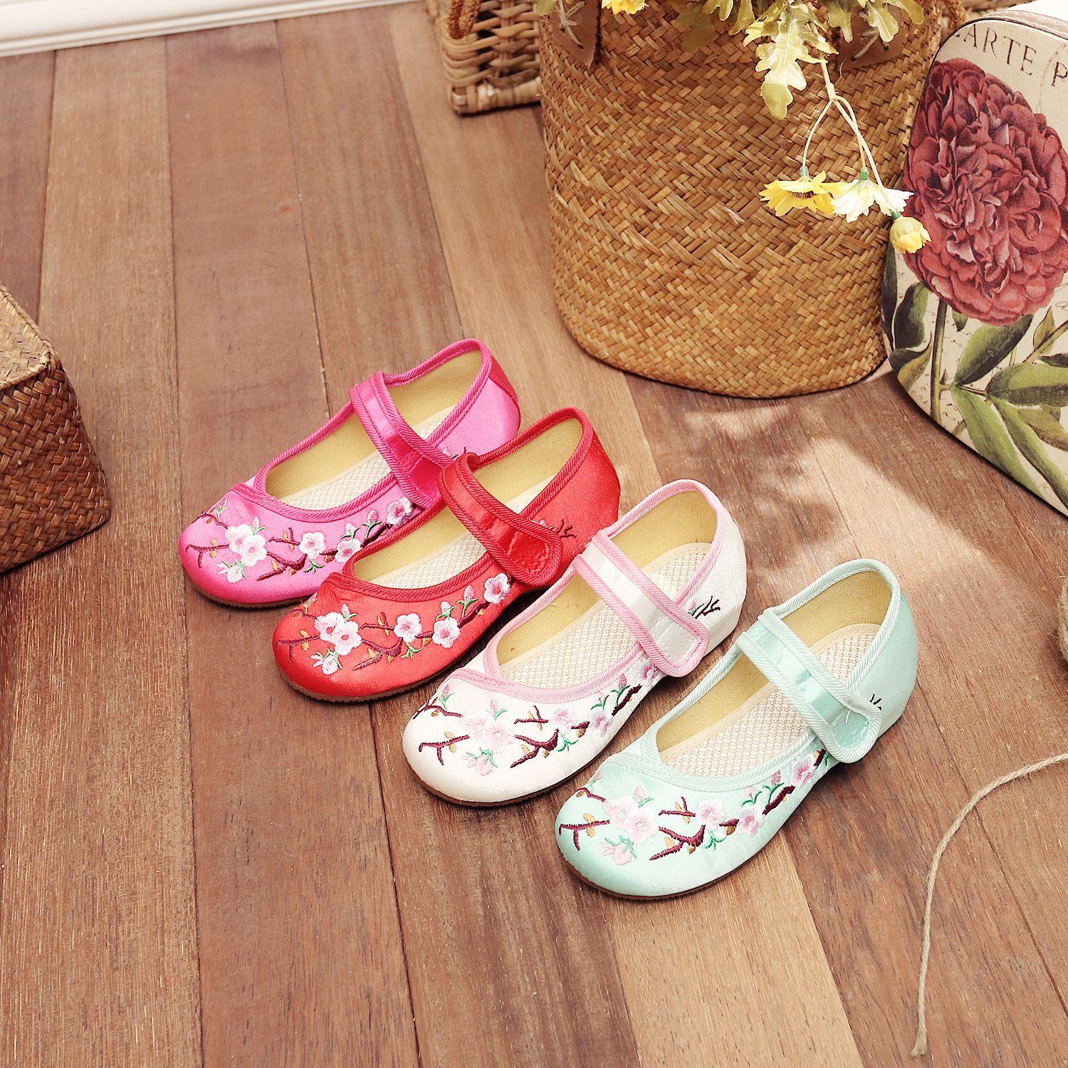 Zapatos de tela para niños, antiguos zapatos bordados de Beijing para niñas, zapatos de estilo étnico hanfu, zapatos de estilo chino antiguo, zapatos de baile de actuación, zapatos de traje Tang