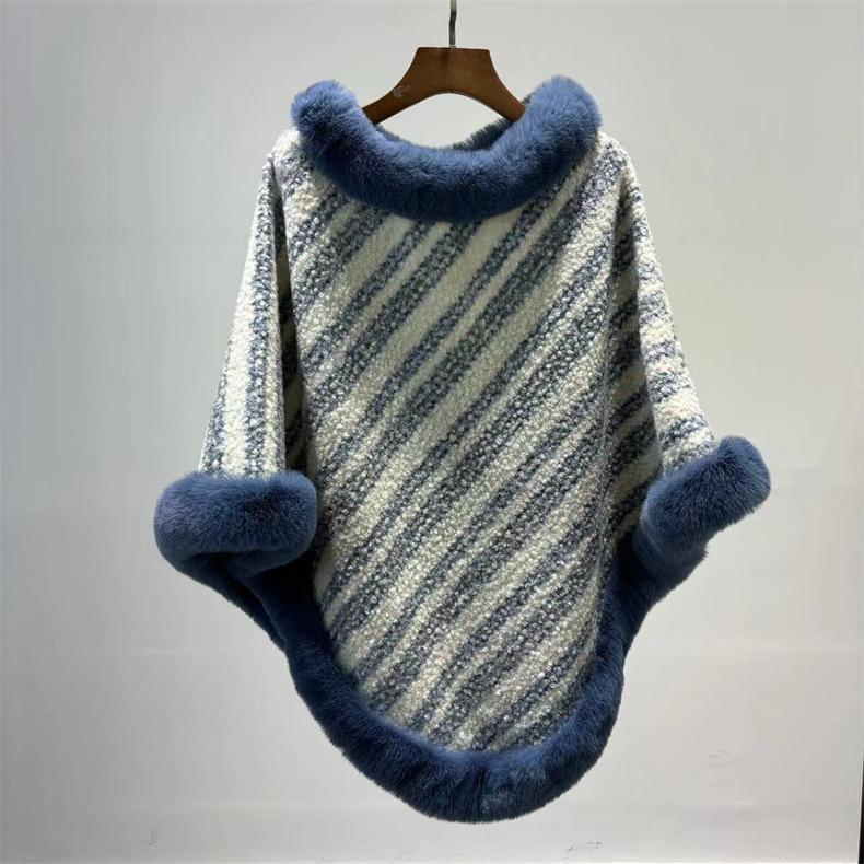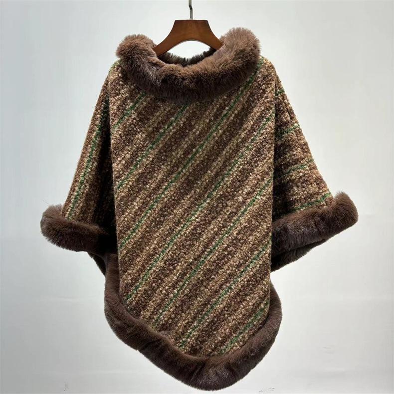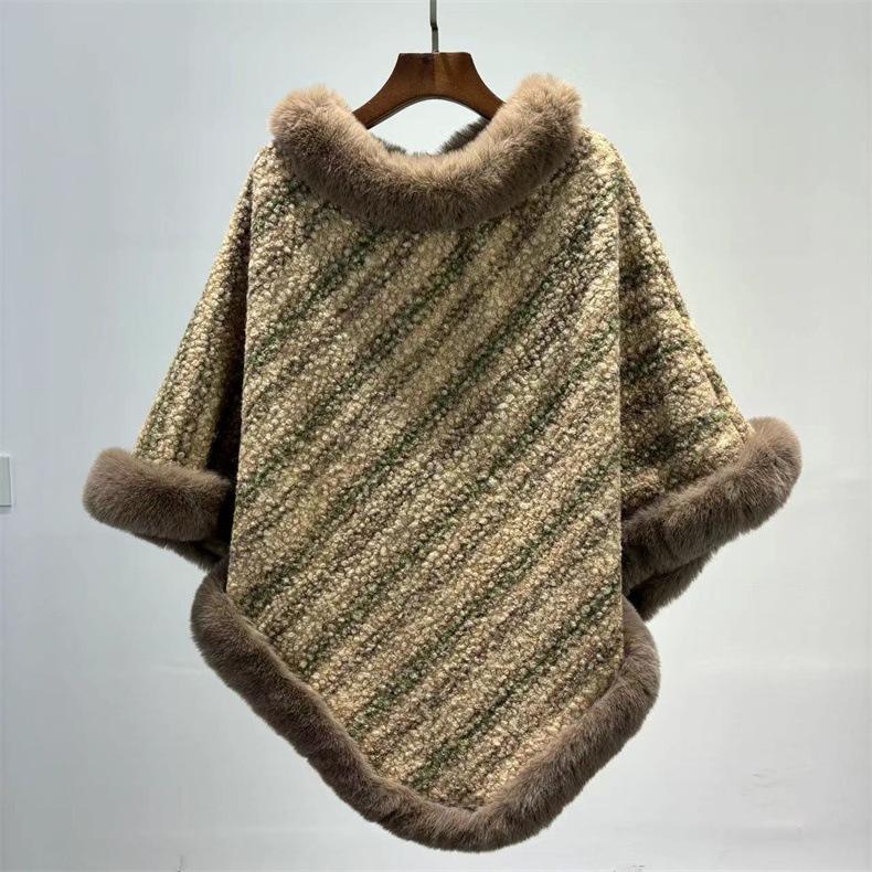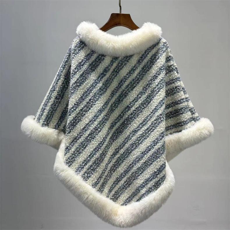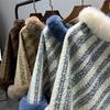 Chaqueta de invierno de piel sintética gruesa y cálida con rayas de colores a juego, estilo chal, para Europa y América.