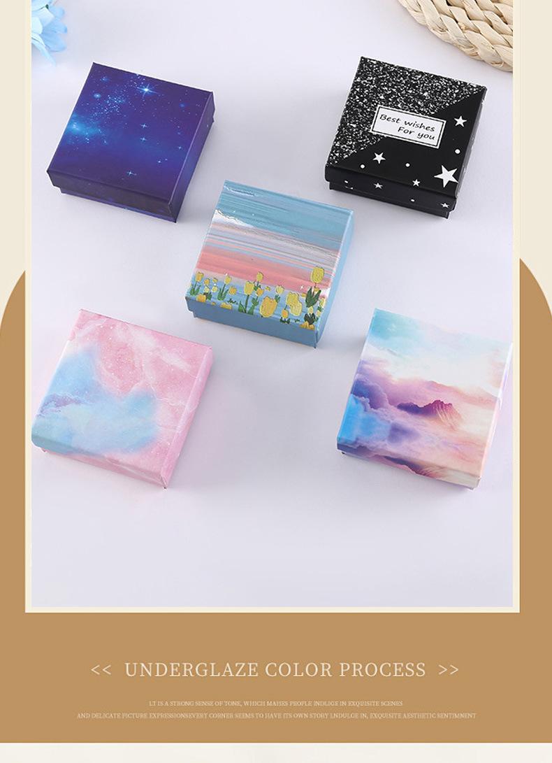 Nueva caja de regalo con diseño de cielo y tierra degradados, para collar, anillo, pendientes y joyería, con impresión de textura creativa.