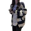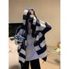 Suéter Chaqueta de Punto Rayado con Capucha y Cordón de Manga Larga para Mujer 2025 Principios de Otoño Nuevo Estilo Perezoso Suelto con Cremallera Cárdigan Top