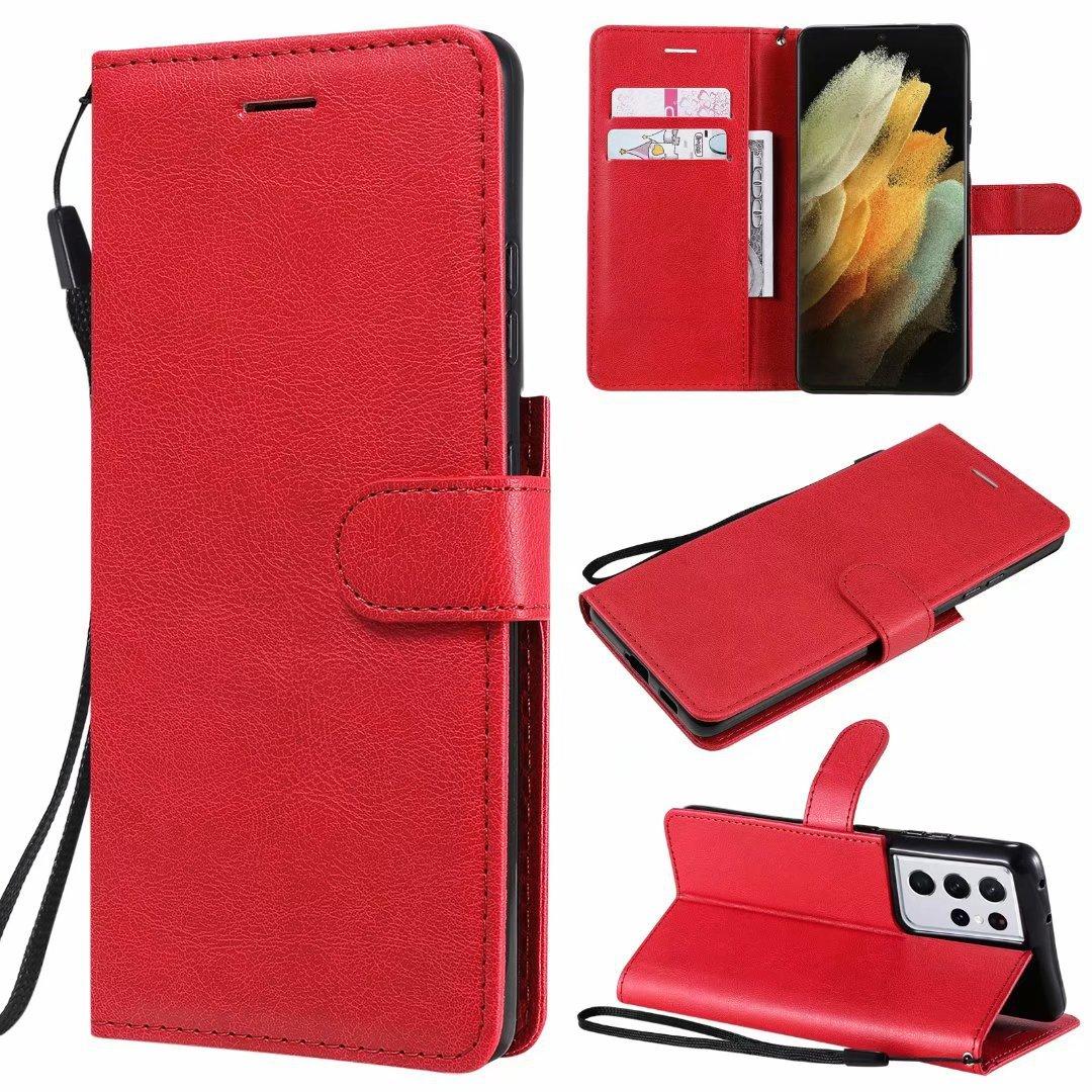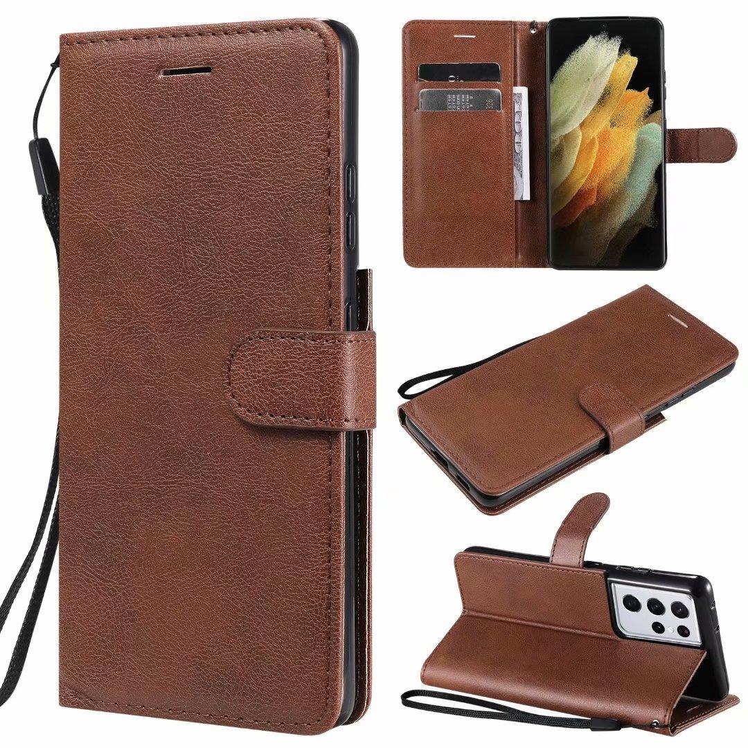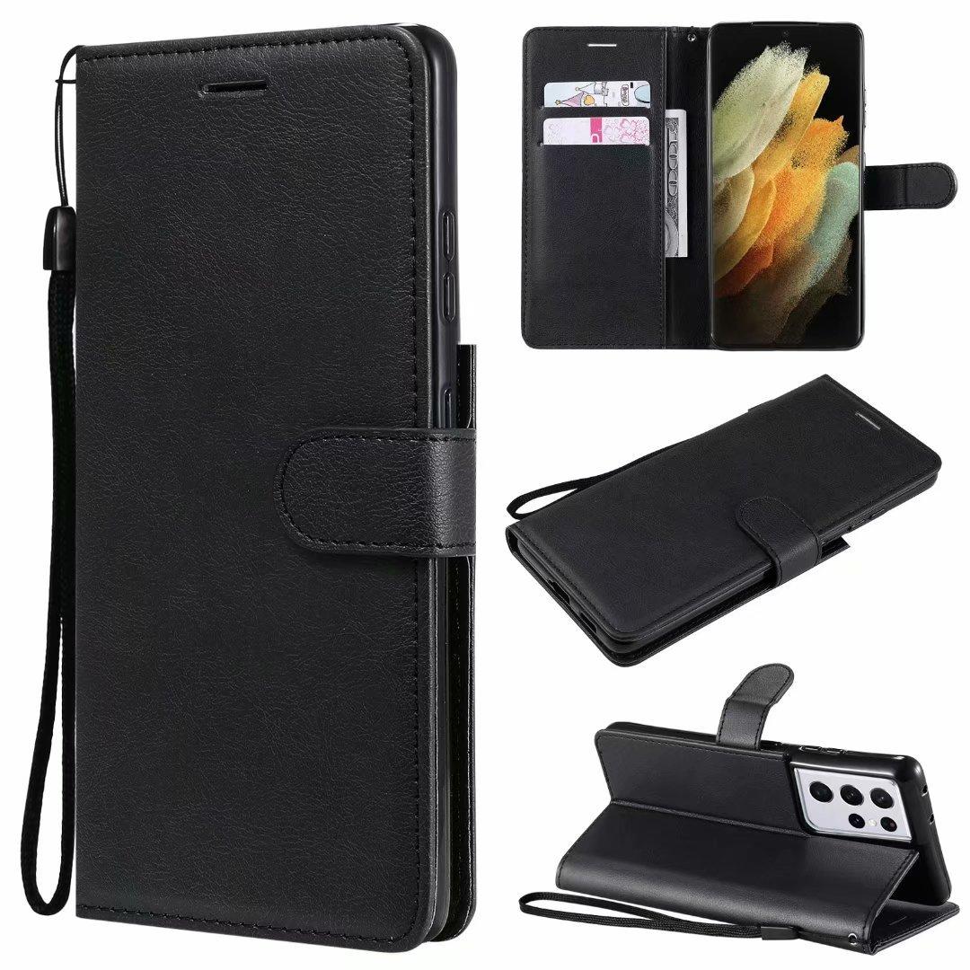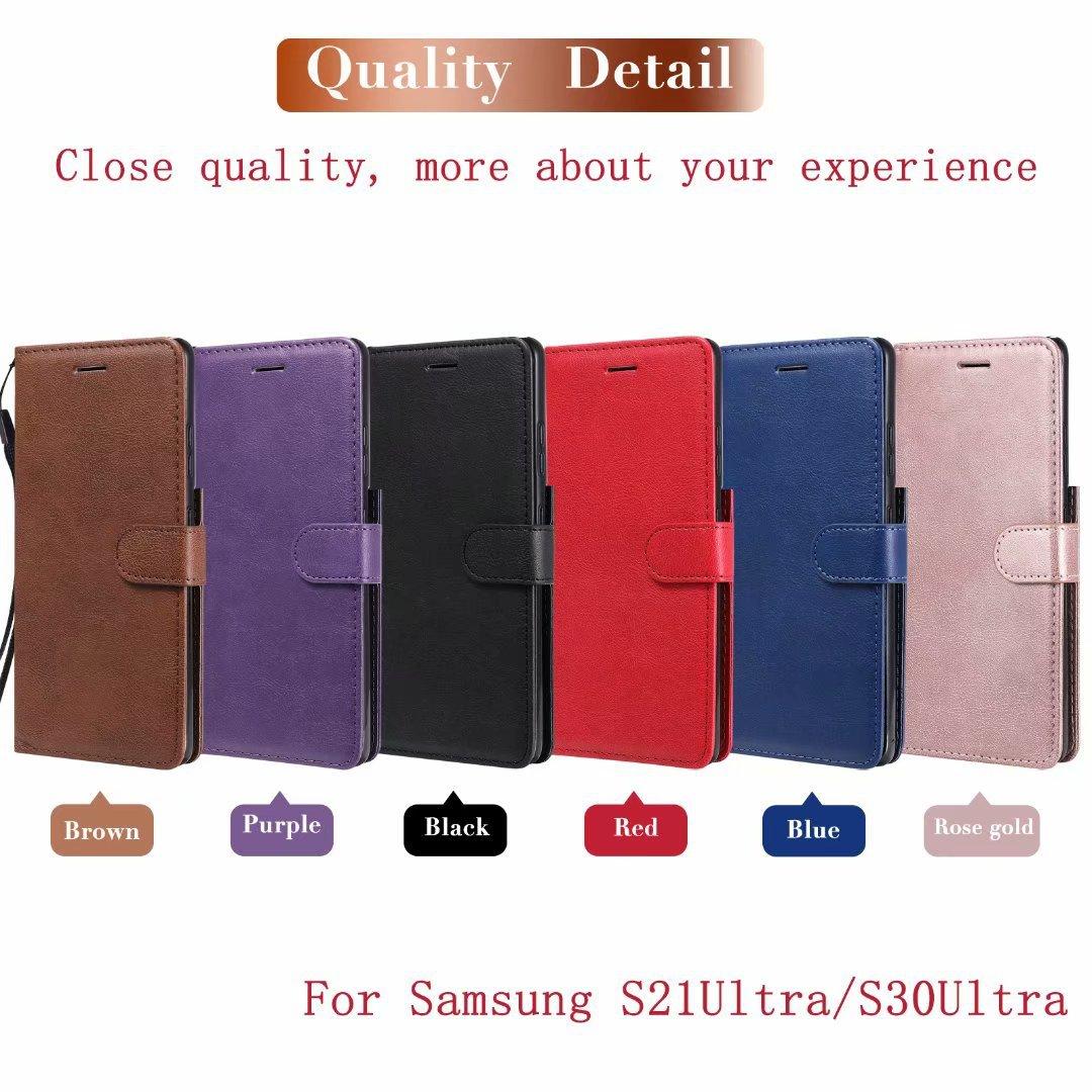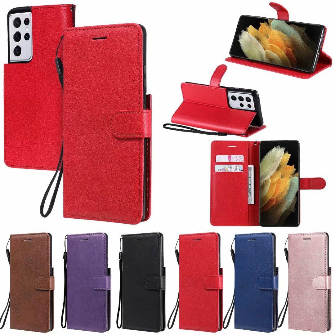 Funda de cuero para teléfono móvil Samsung S21 plus A02S, color sólido, con patrón de cuero, tarjetero, funda protectora A52