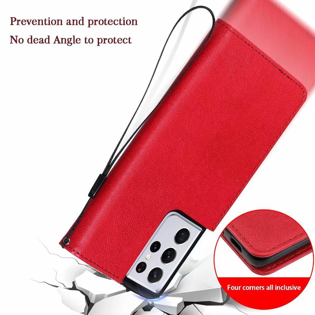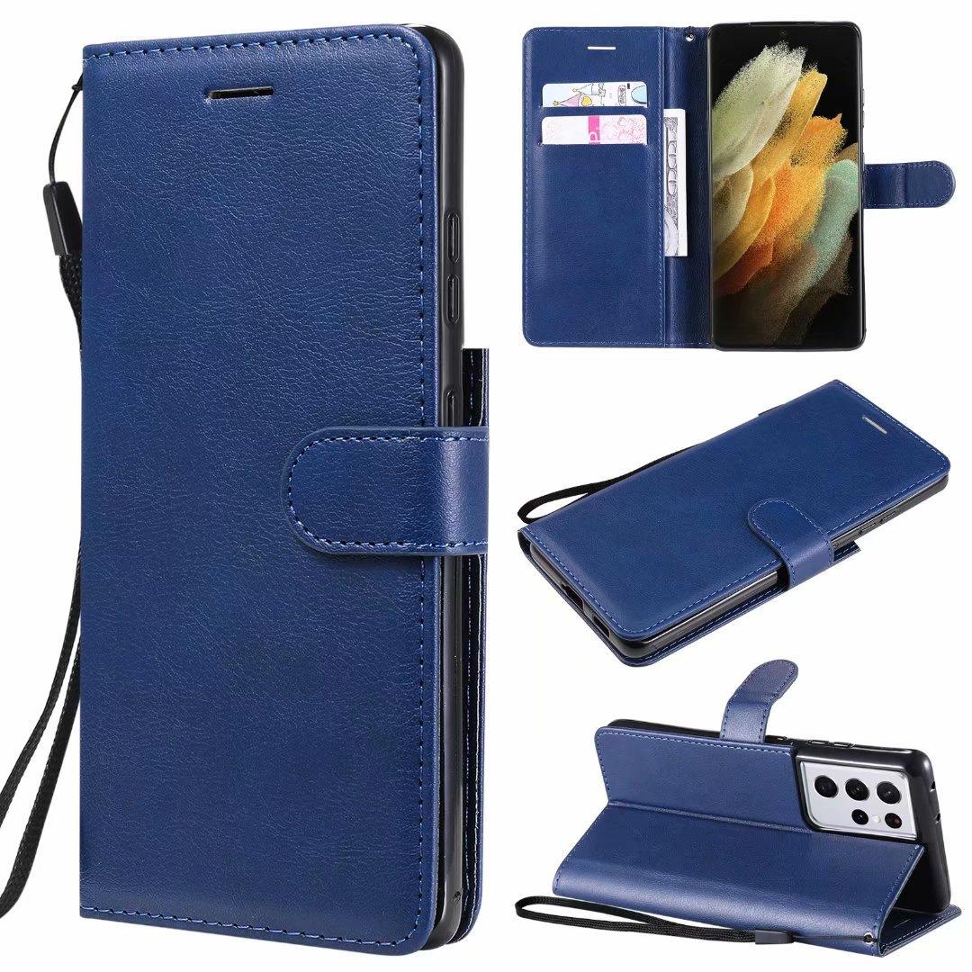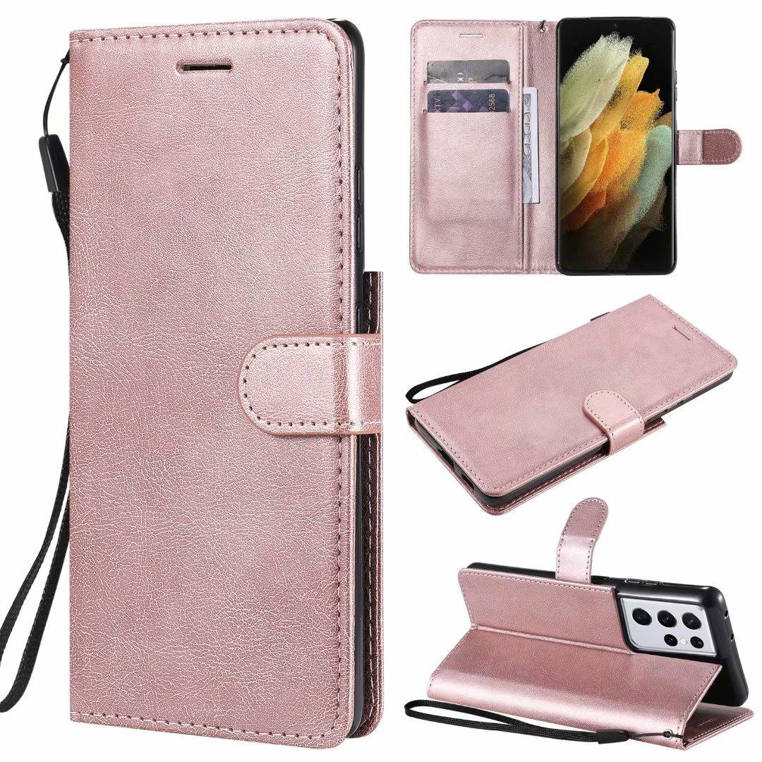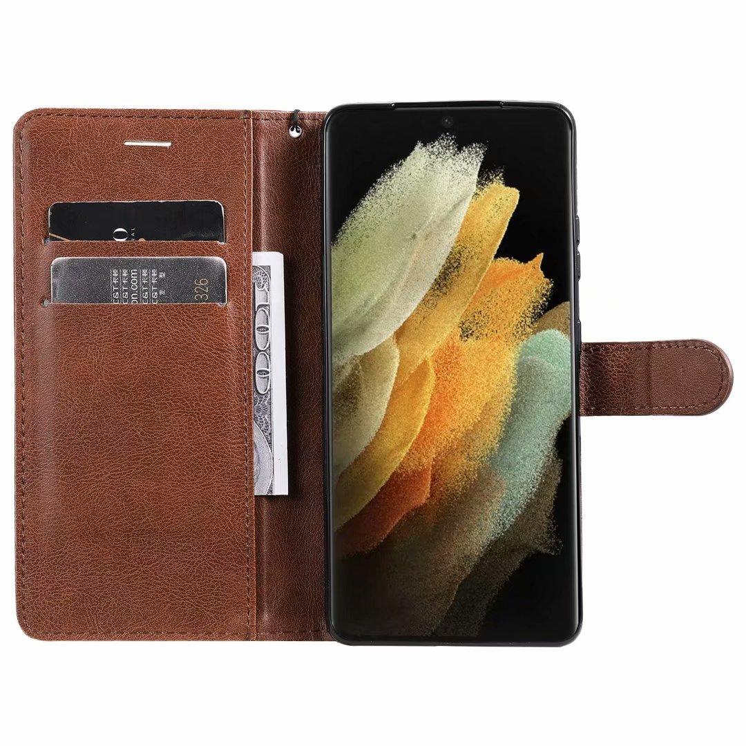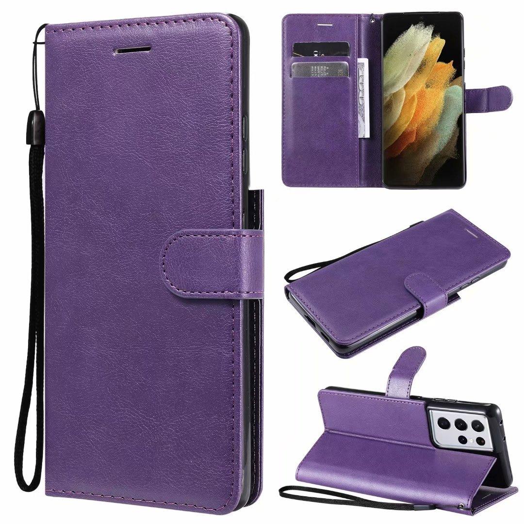 Funda de cuero para teléfono móvil Samsung S21 plus A02S, color sólido, con patrón de cuero, tarjetero, funda protectora A52