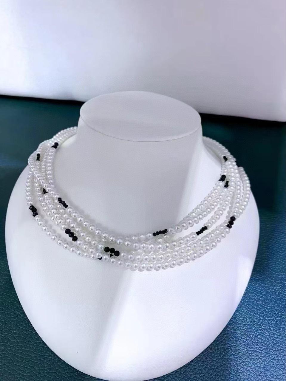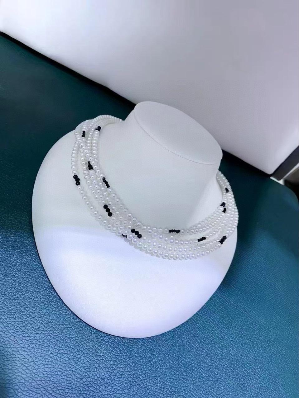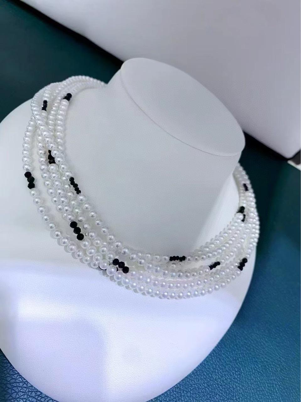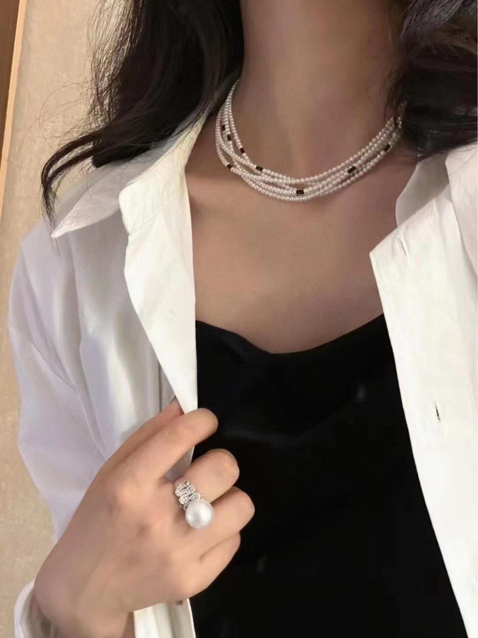 Collar de perlas naturales multicapa de moda europea y americana brillante versátil puntuación completa 4-5 mm espinela negra con caja de regalo