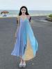 Vestido de verano con dopamina, estilo francés, con falda bonita, para vacaciones en la playa, con costuras a juego.