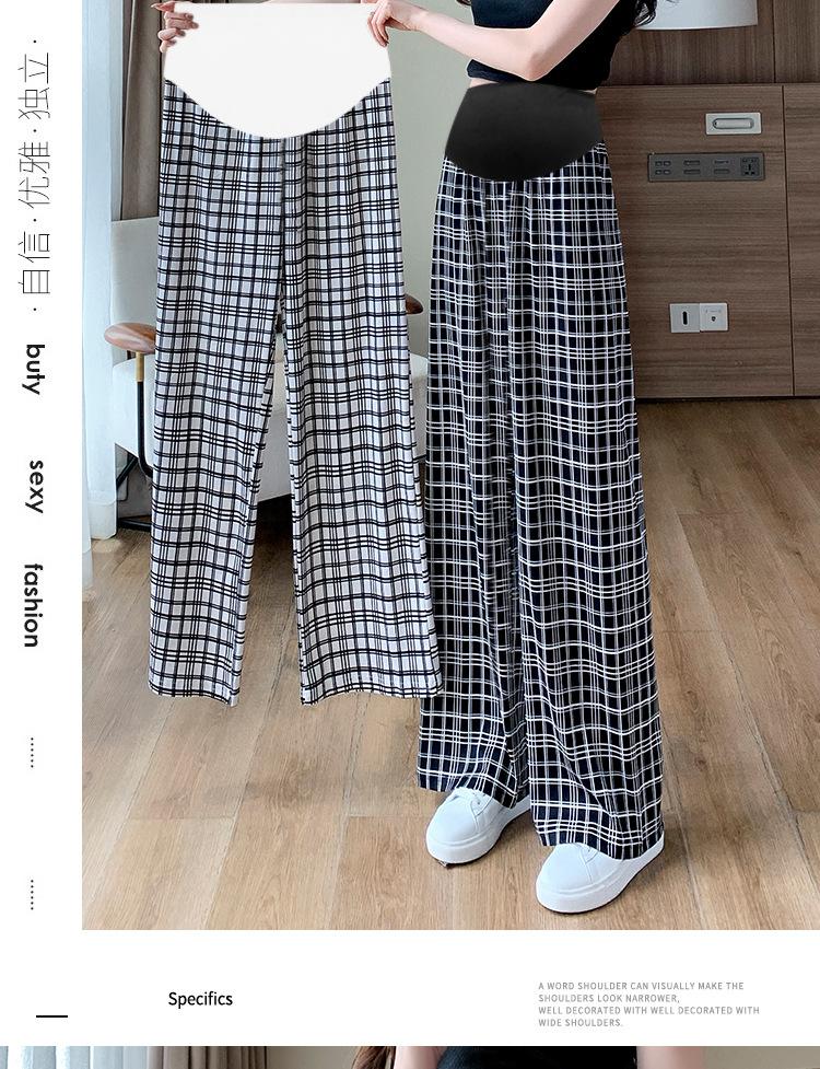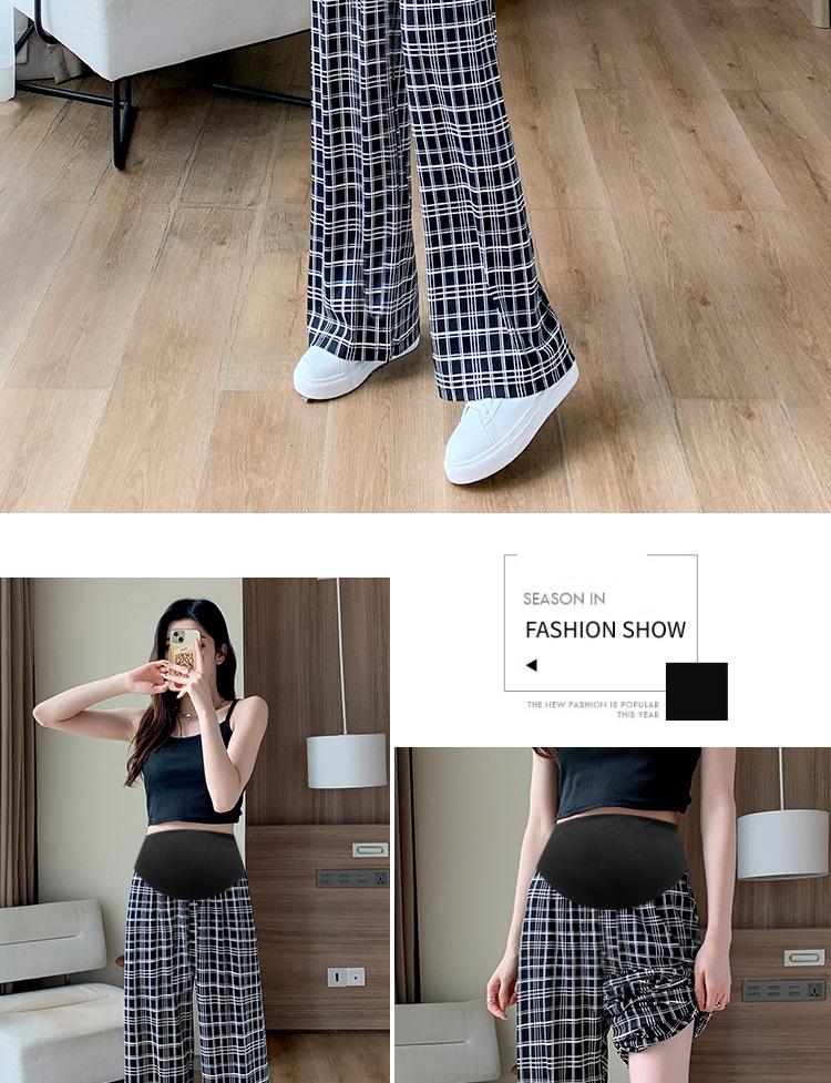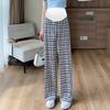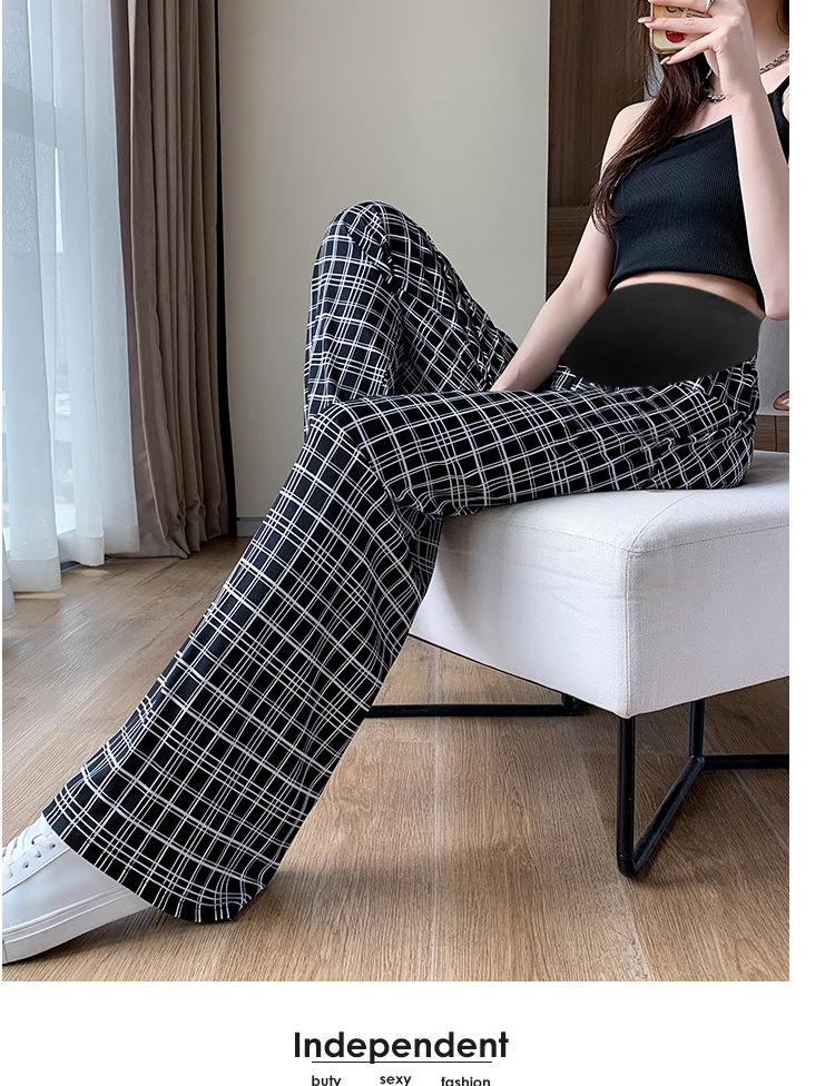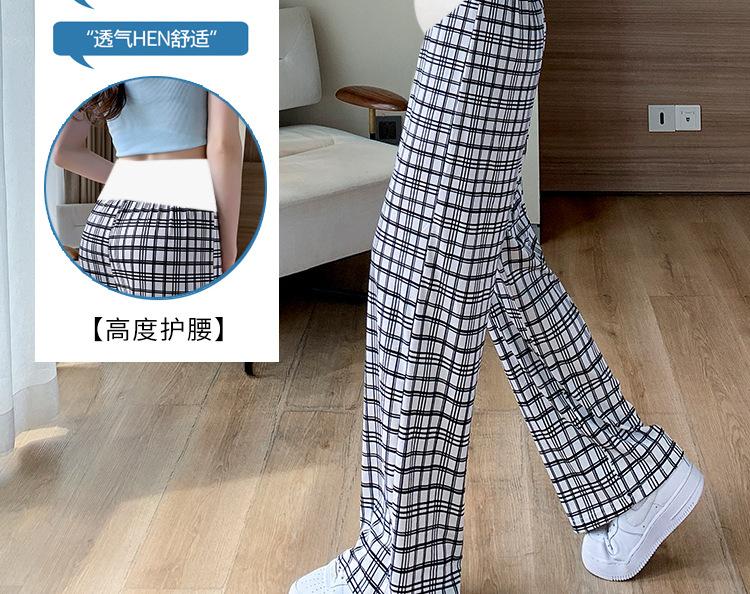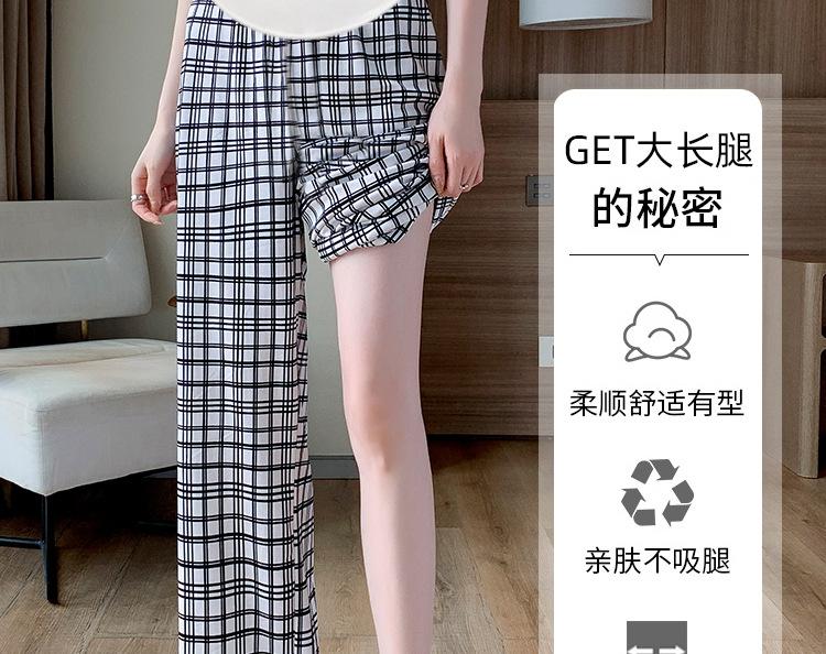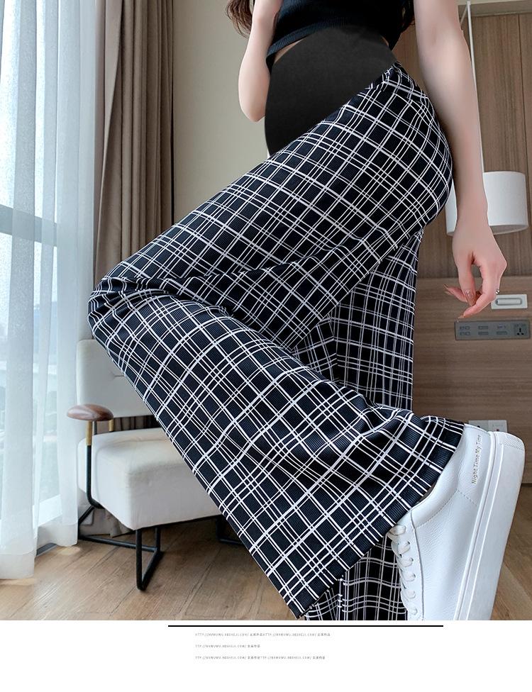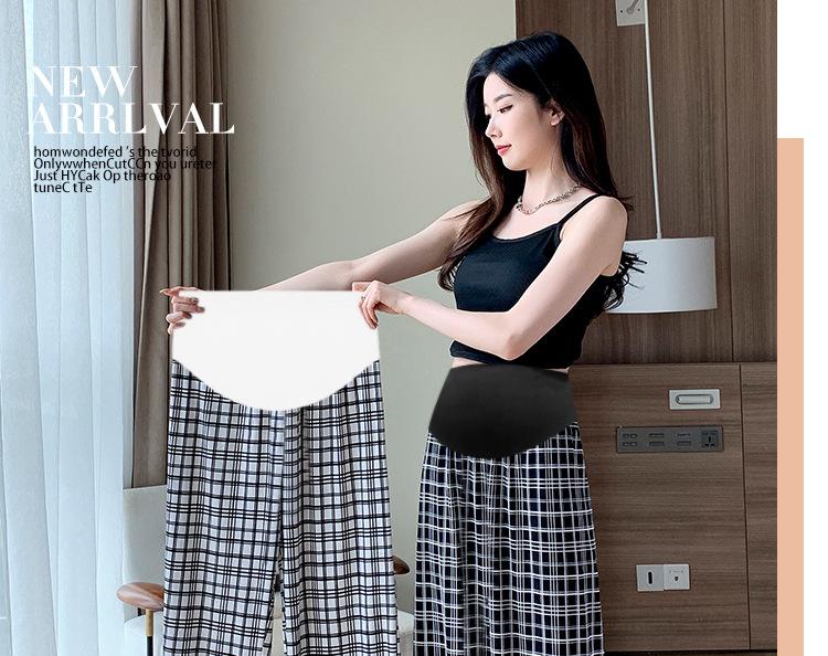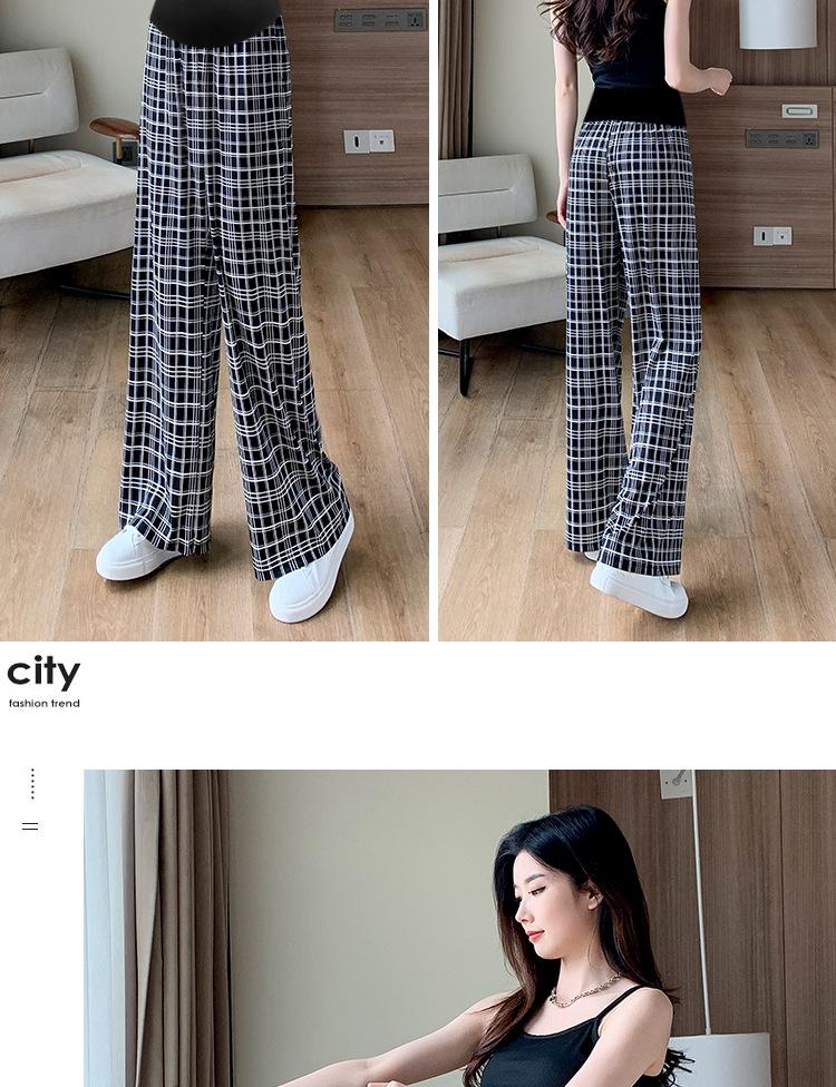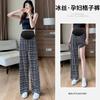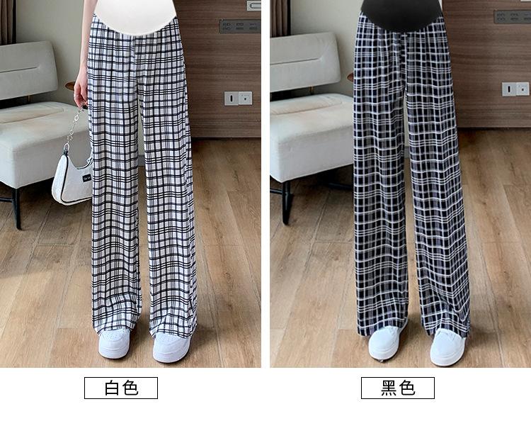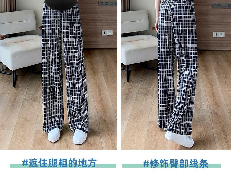 Pantalones de mujer embarazada, novedad de verano 2024, pantalones anchos de seda helada a cuadros, pantalones deportivos rectos y ajustados, pantalones de fregona, pantalones de mujer embarazada
