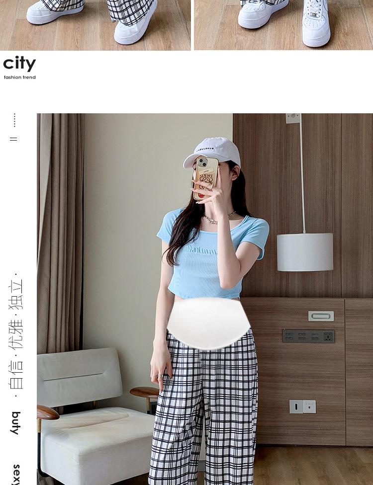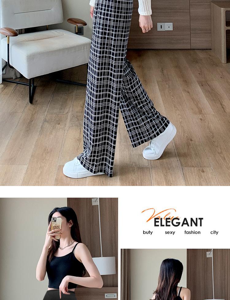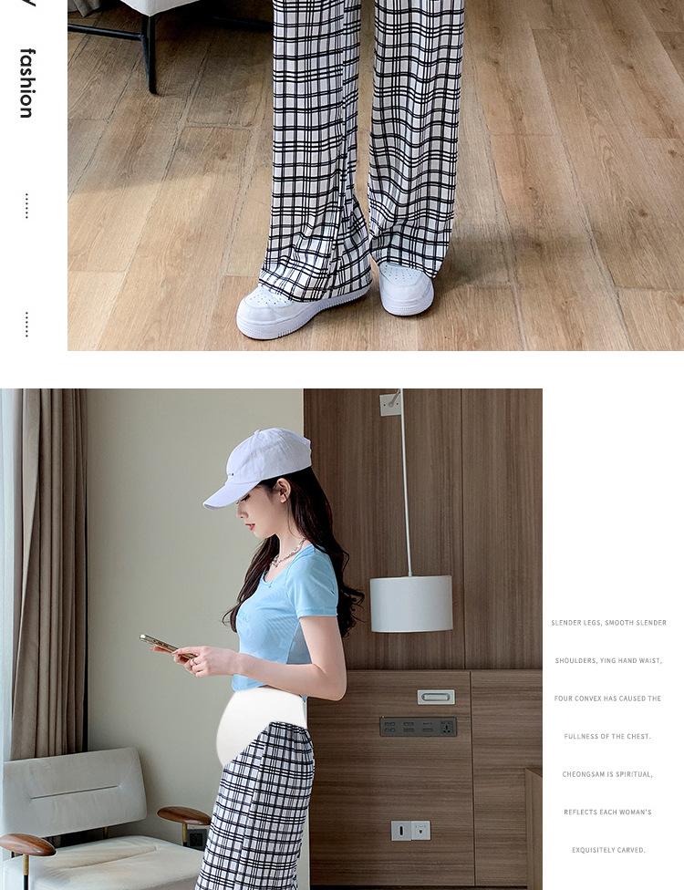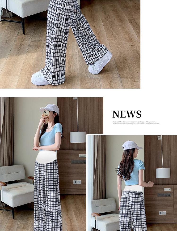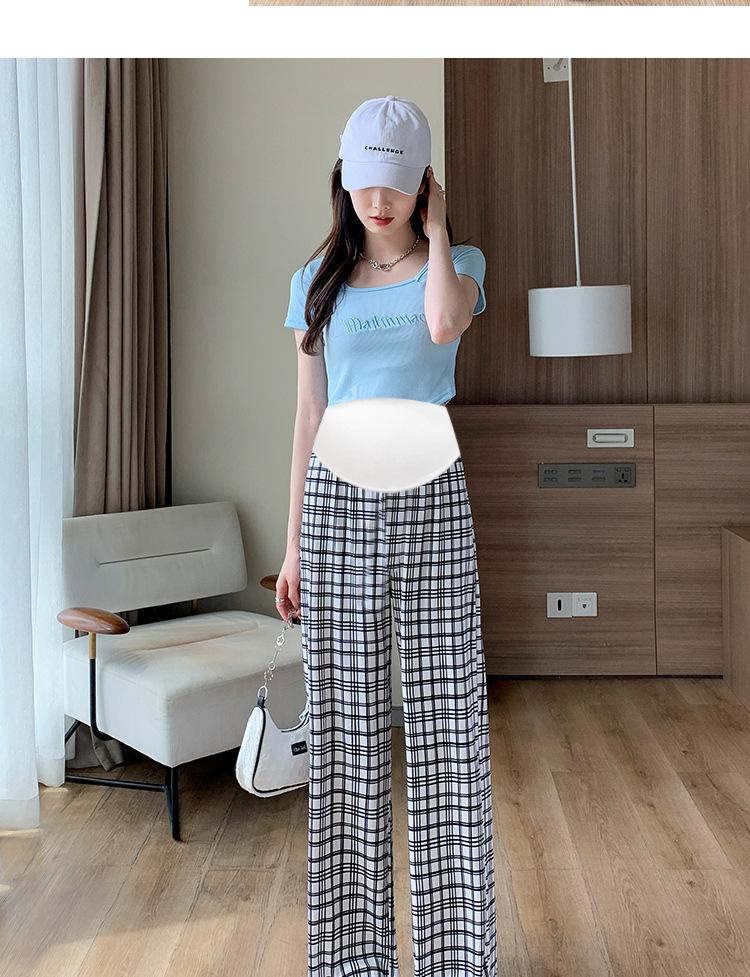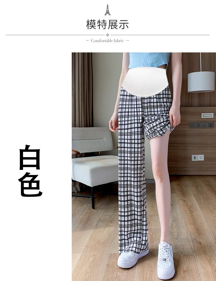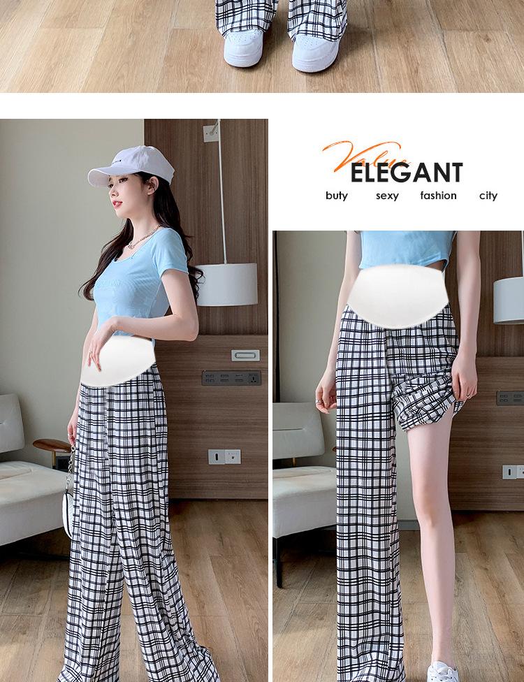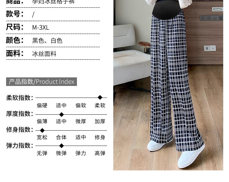 Pantalones de mujer embarazada, novedad de verano 2024, pantalones anchos de seda helada a cuadros, pantalones deportivos rectos y ajustados, pantalones de fregona, pantalones de mujer embarazada