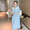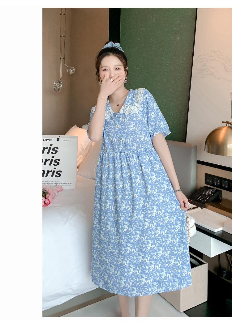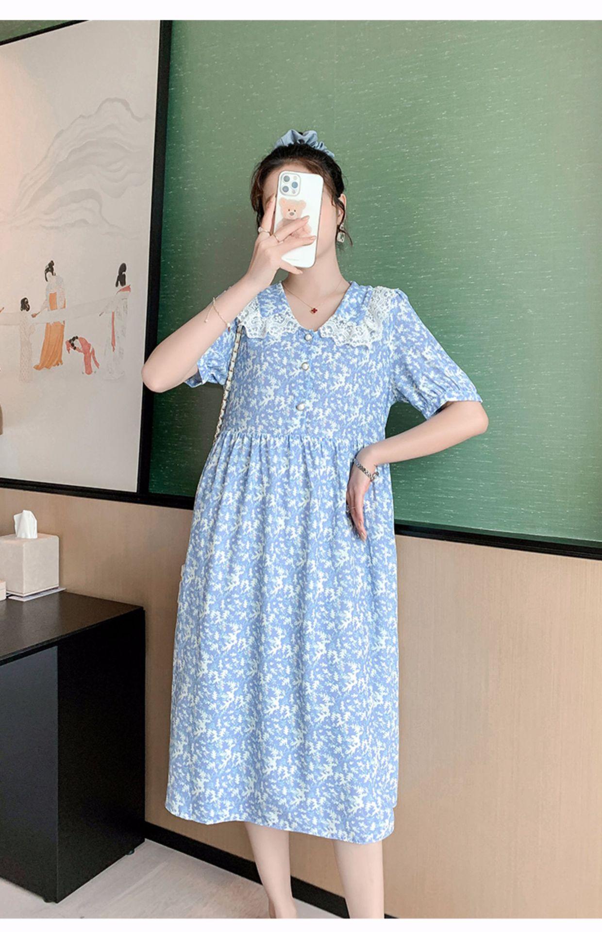Vestido de maternidad de verano, holgado, de talla grande, con estampado floral, de manga corta, para embarazadas y lactancia.