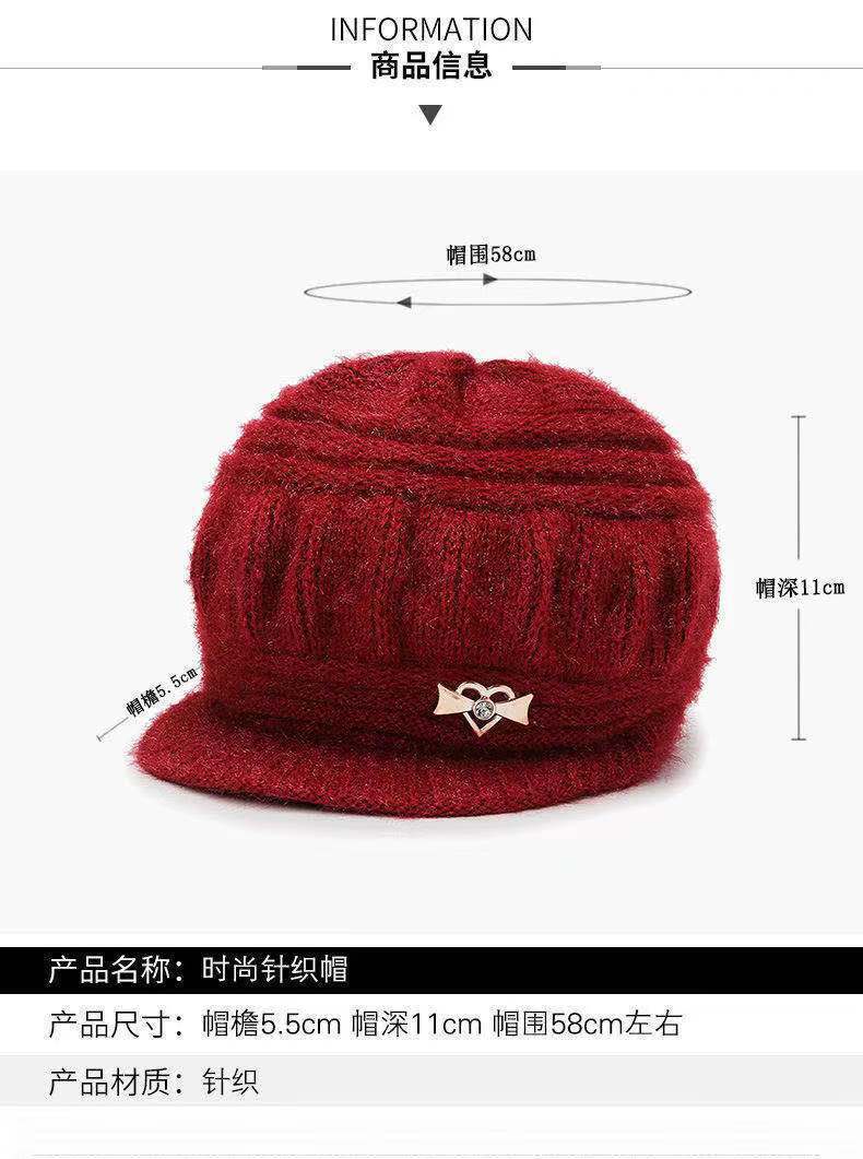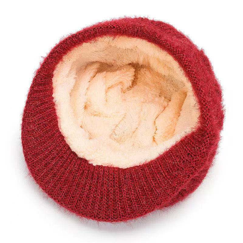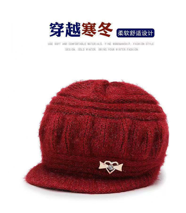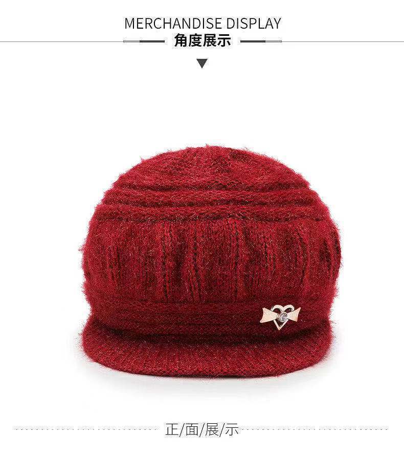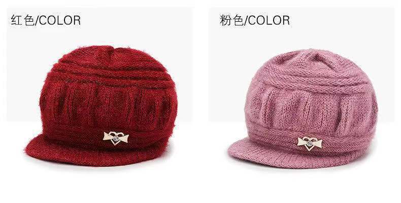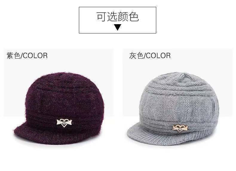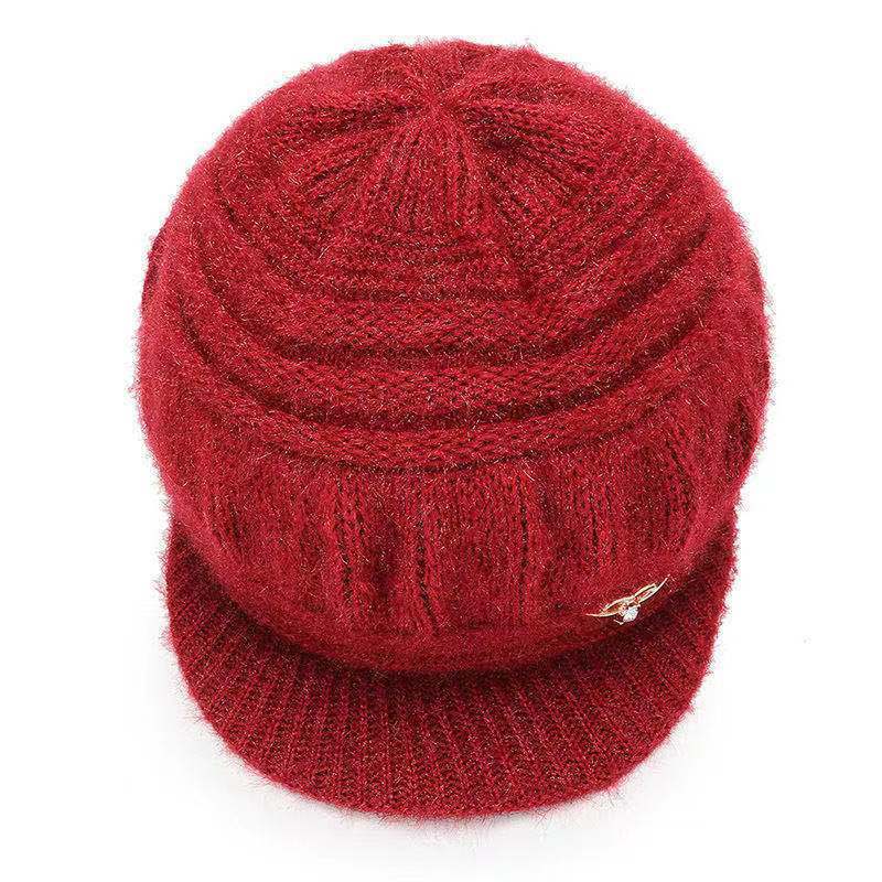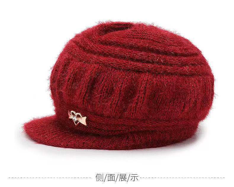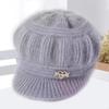 Gorro de punto grueso y cálido para personas de mediana edad y ancianos, nuevo gorro de lana de terciopelo para mujer, gorro de protección para los oídos con visera para mujer