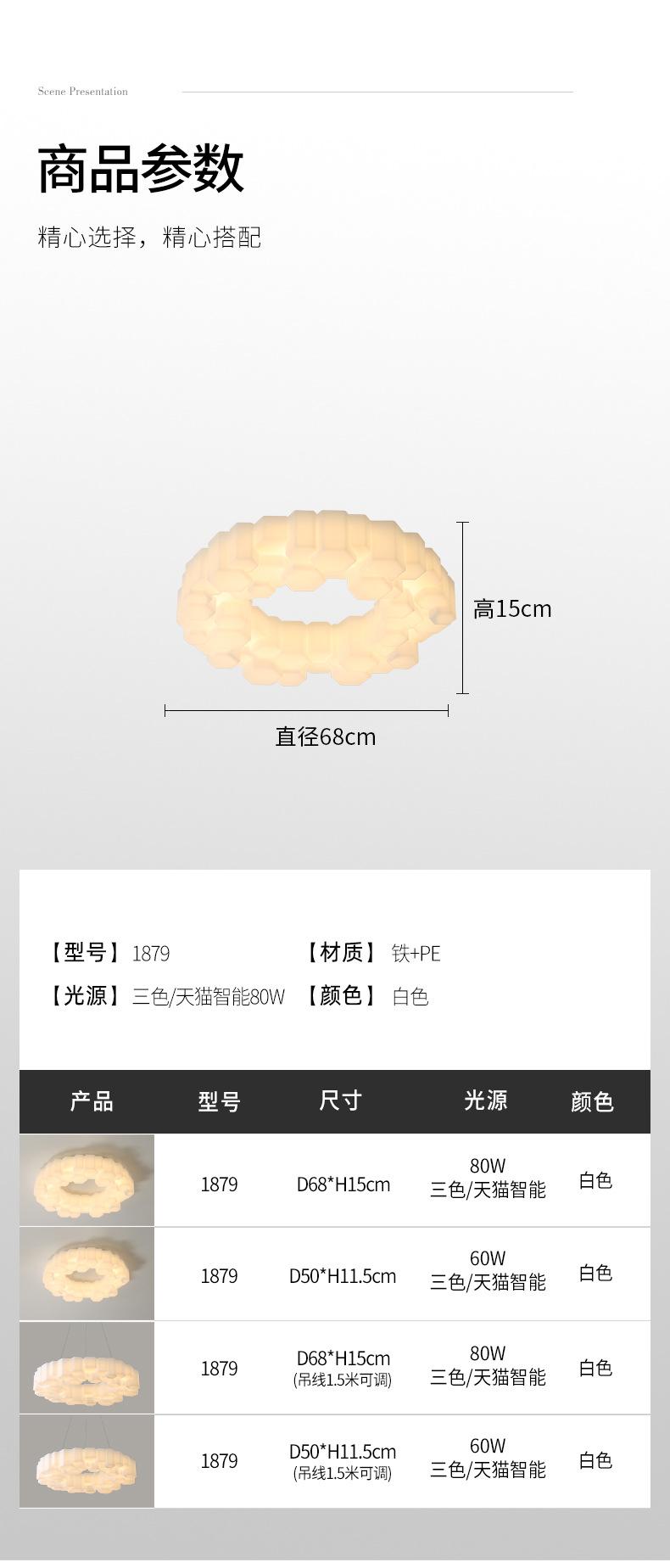 1879-chandelier white 68cm-wuji tmall 80w, 1879-chandelier white 68cm-three-color dimming 80w, 1879-chandelier...