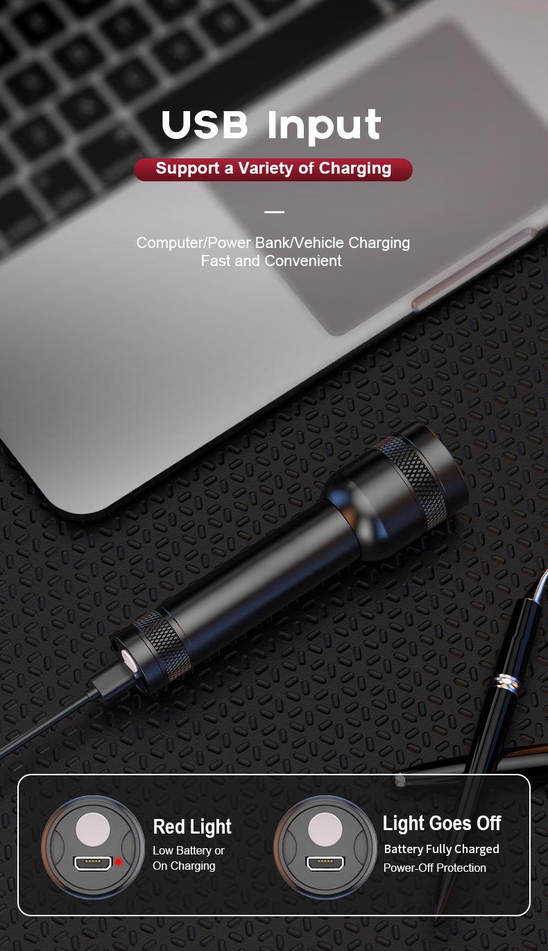 Linterna ultrabrillante de luz potente para exteriores, recargable, multifunción, de largo alcance, portátil, con zoom, mini iluminación para el hogar