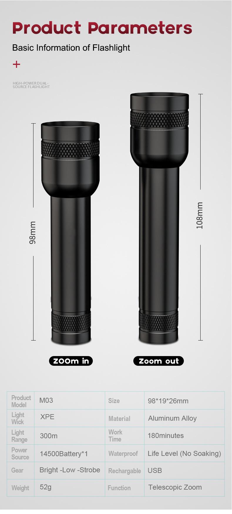 Compra Linterna ultrabrillante de luz potente para exteriores, recargable, multifunción, de largo alcance, portátil, con zoom, mini iluminación para el hogar al por mayor en Joom.pro