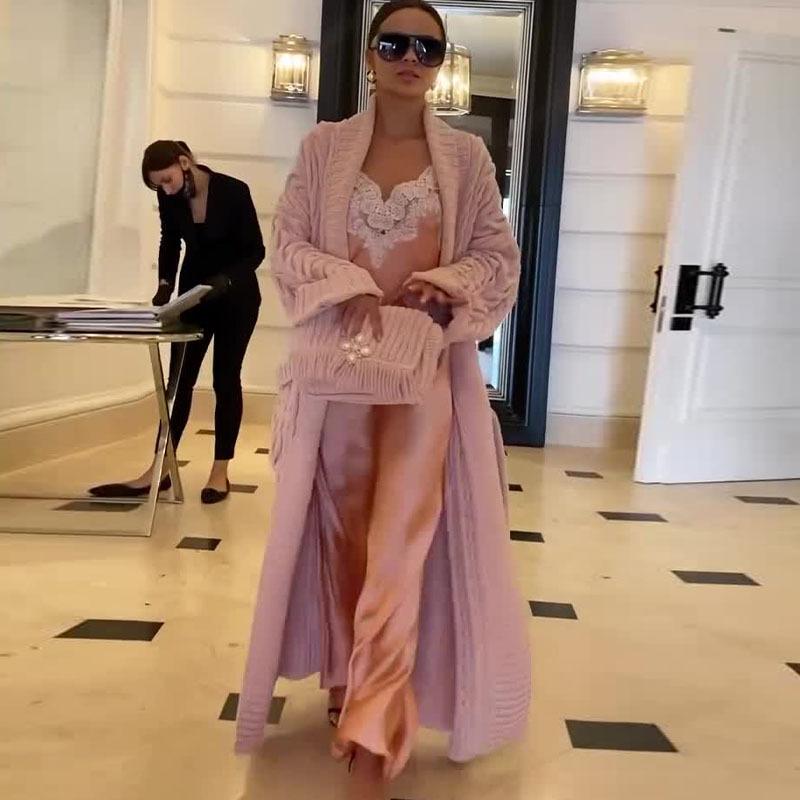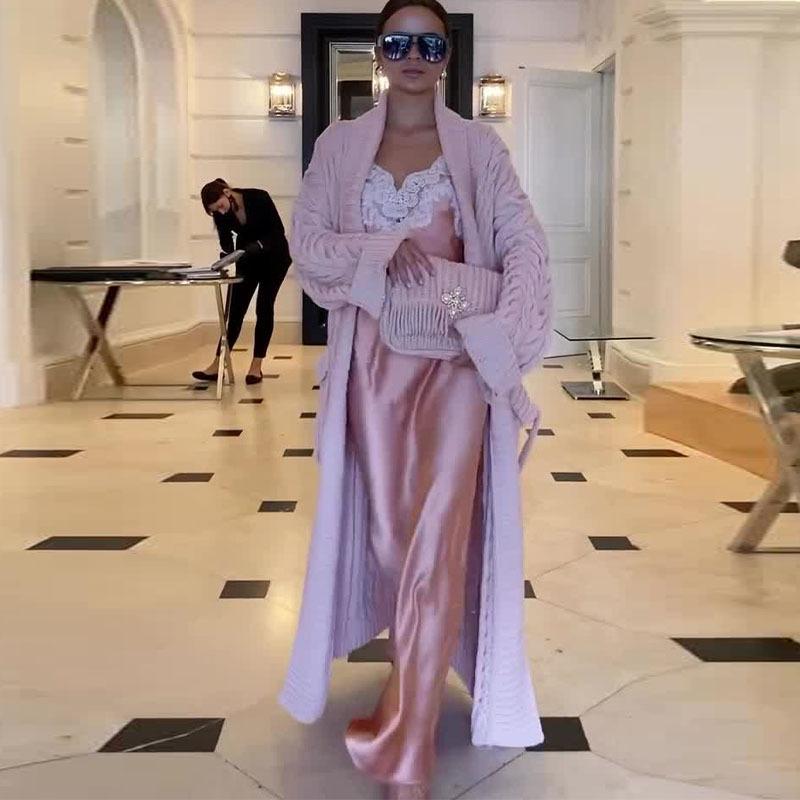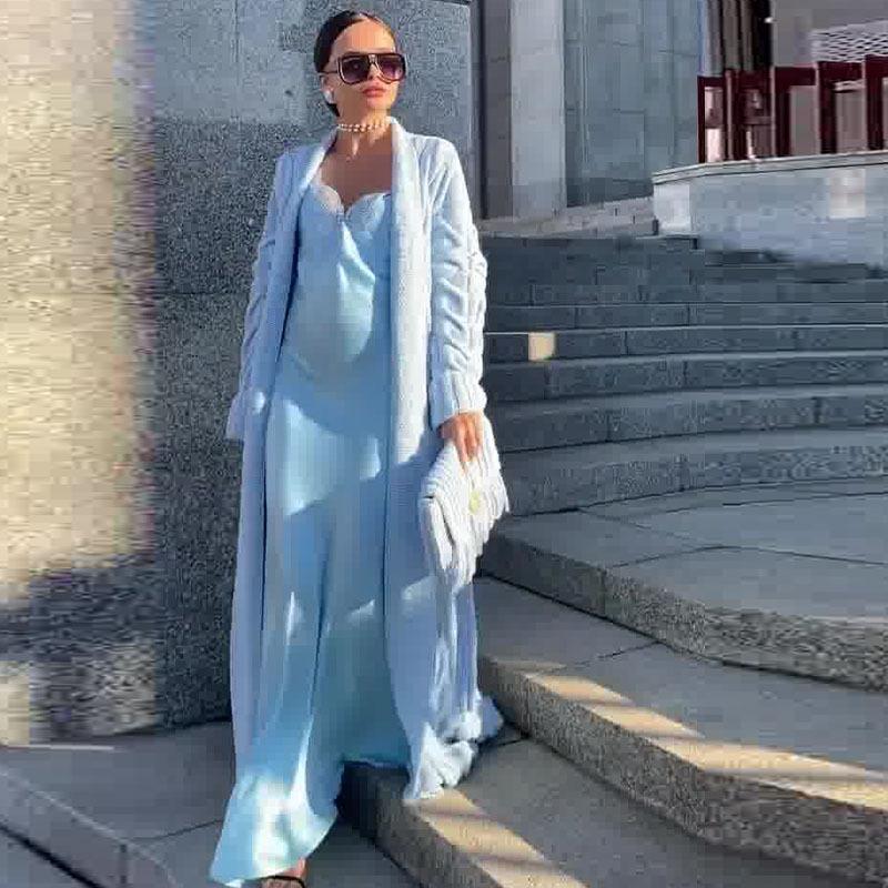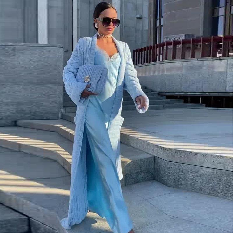 Otoño e Invierno 2023 Nuevo Europeo y Americano Amazon Transfronterizo Color Puro Estilo Holgazán Prendas de Punto Tejidas Abrigo Largo