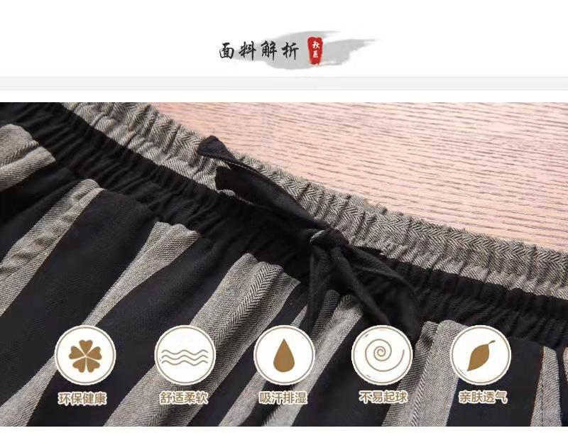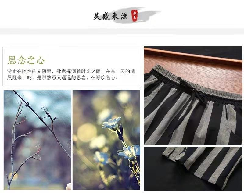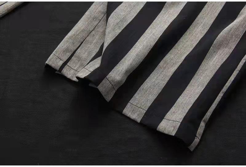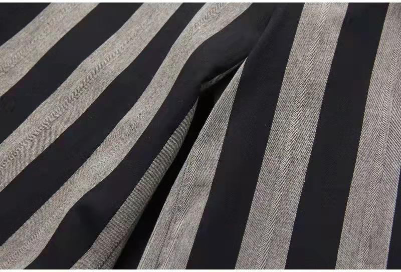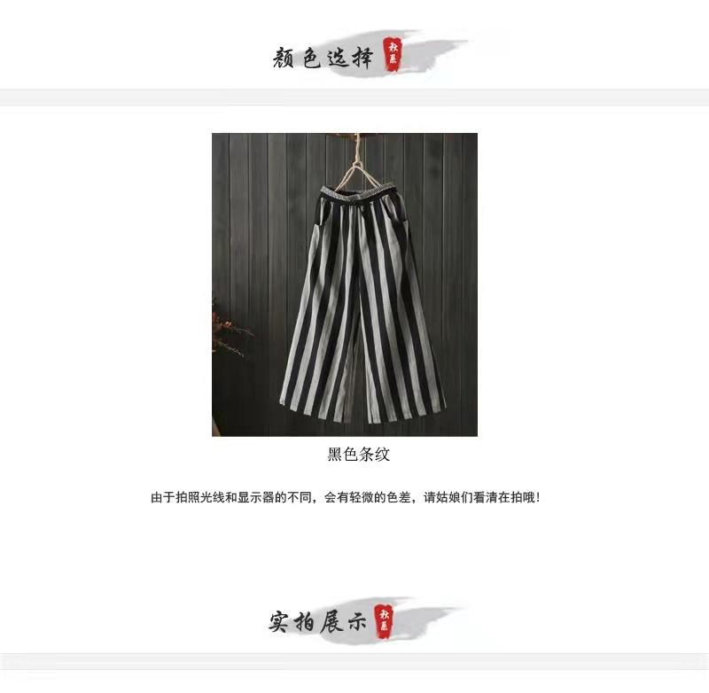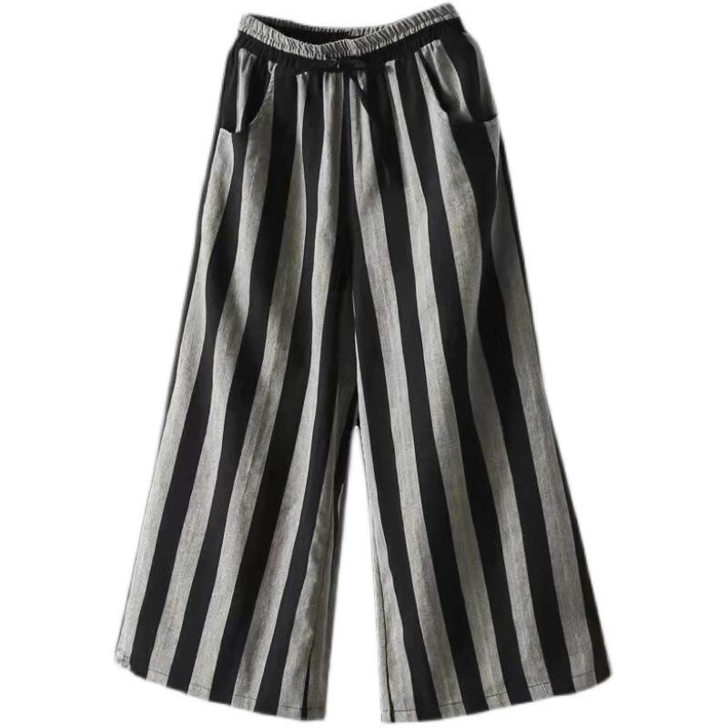 Pantalones casuales de pierna ancha a rayas de algodón y lino artísticos vintage nuevos de primavera 2024 para mujer