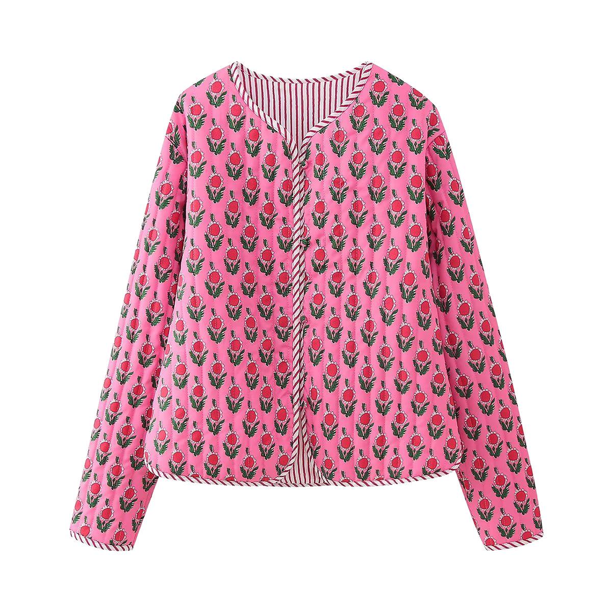 ZR Comercio Exterior Venta al por mayor Ropa de mujer de estilo europeo y americano Abrigo acolchado de algodón con cuello en V y manga larga holgado e informal