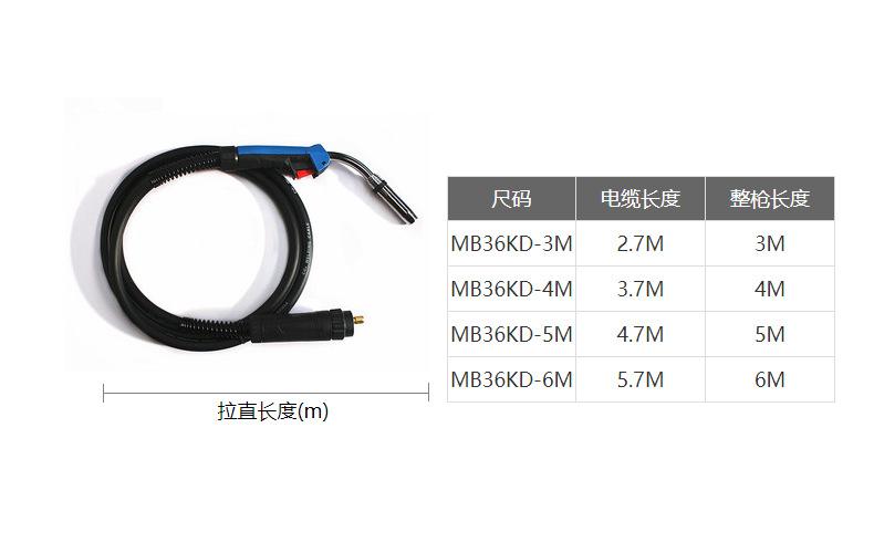 Antorcha de soldadura MB36KD con protección de gas de dióxido de carbono, venta al por mayor de fábrica, longitud de 3 a 6 metros opcional