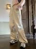 Pantalones cargo rectos de cintura alta con estampado floral americano para mujer, otoño 2024, holgados, adelgazantes, con pierna ancha y cordón ajustable.