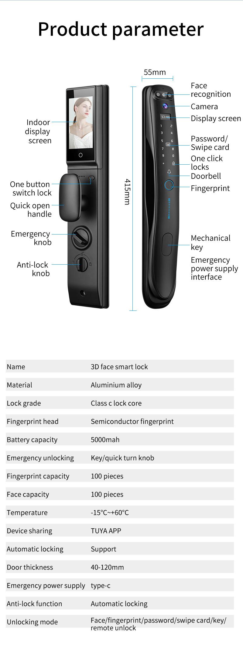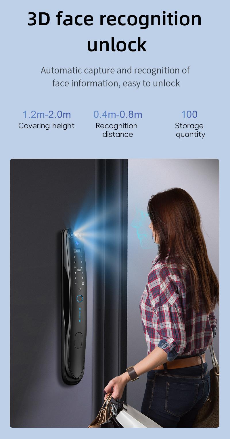 Cerradura de reconocimiento facial 3D seguridad para el hogar cerradura con contraseña para puerta huella digital grafiti ojo de gato remoto automático fabricante de cerradura inteligente