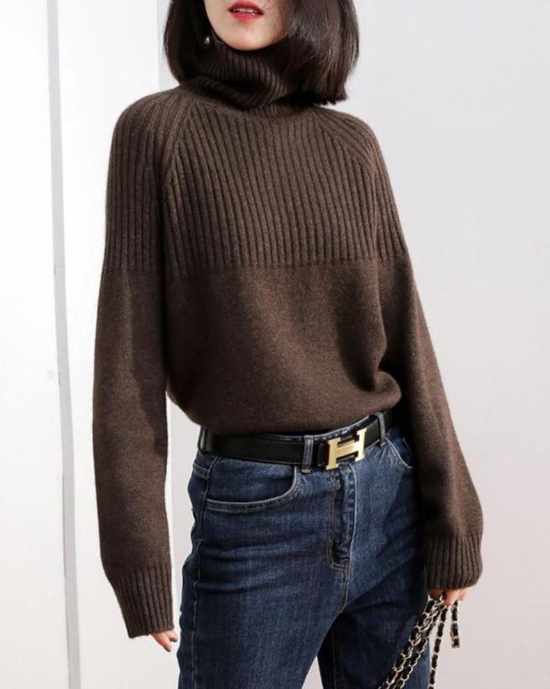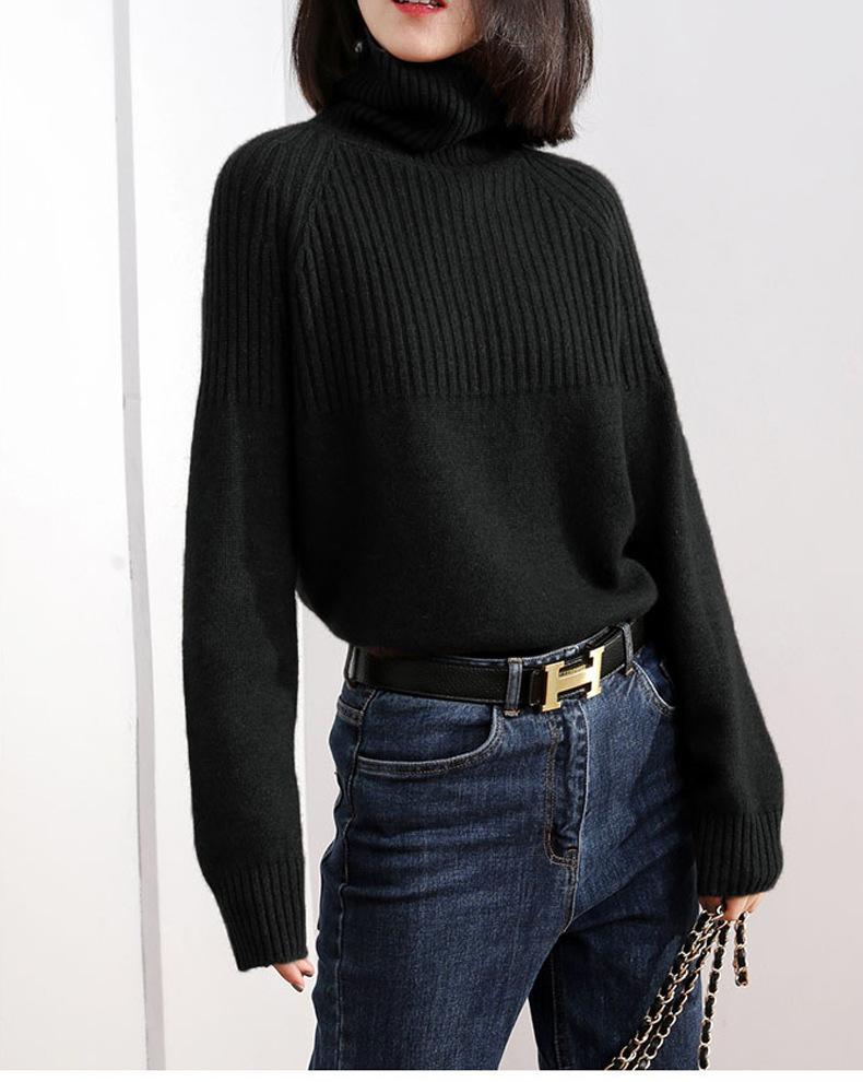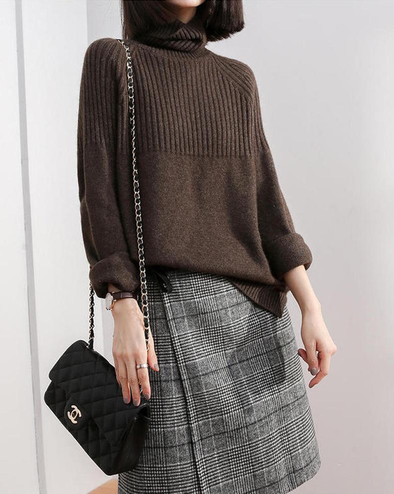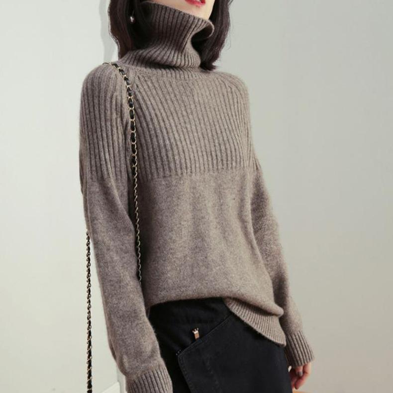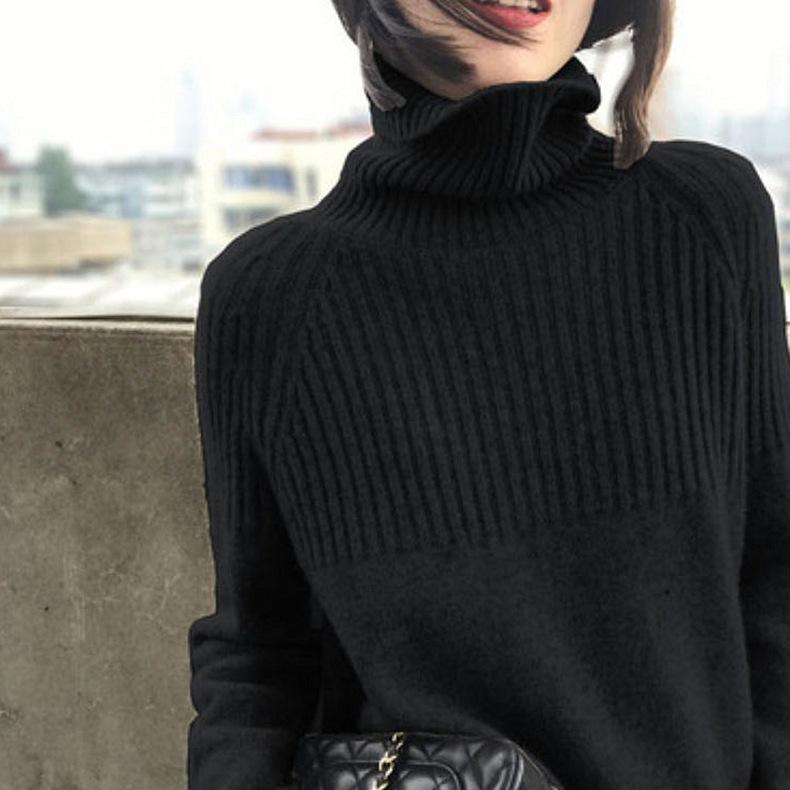 Amazon 2023 Nuevo Suéter para Mujer Otoño e Invierno Cuello Alto Grueso Jersey Suelto Estilo Perezoso Tejido Camisa Base Moderna