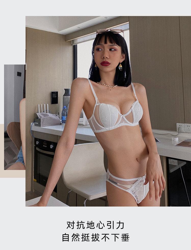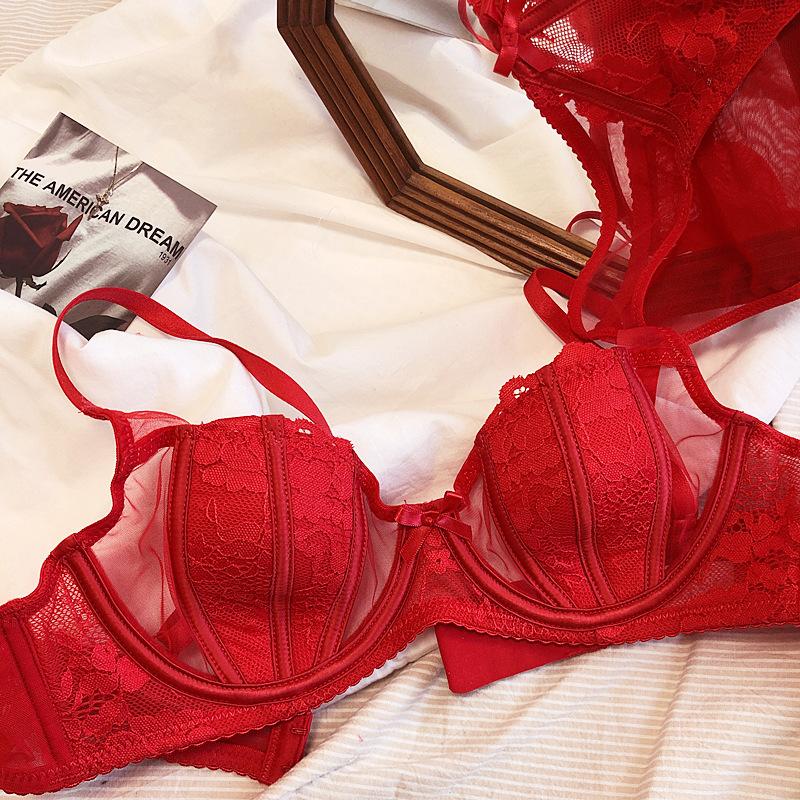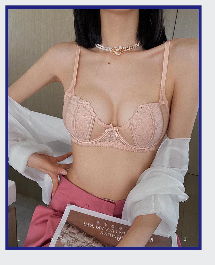 Lencería de Estilo Francés 2024 Encaje Ultradelgado Sexy Conjunto de Brasier Fino para Mujer Venta al Mayoreo Push-Up Ultradelgado Transpirable