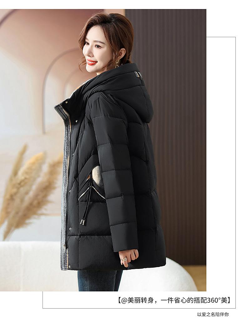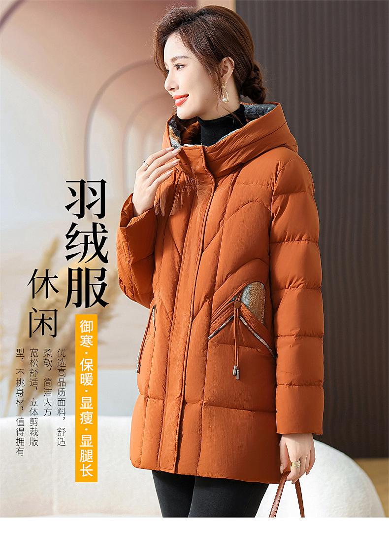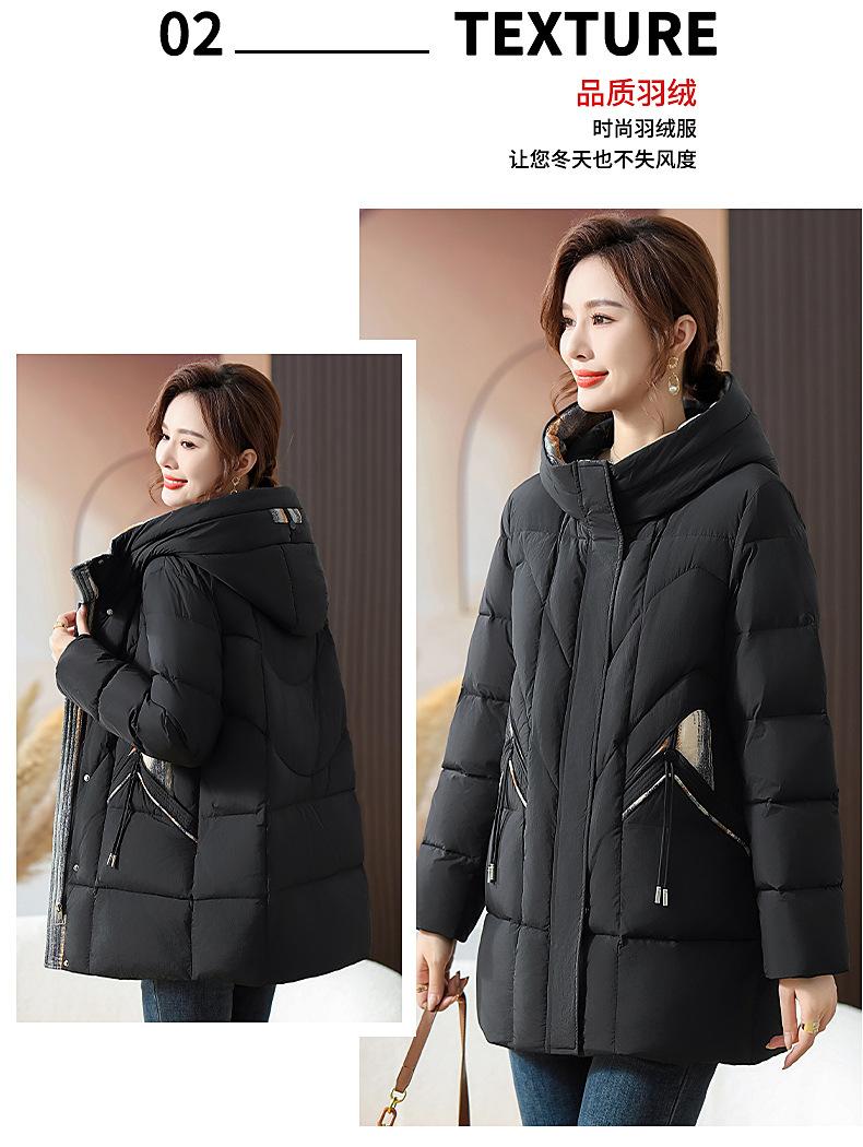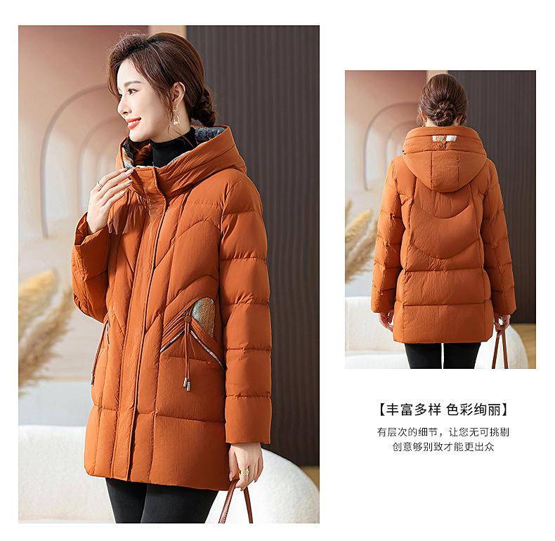 Chaqueta de Invierno para Mamá a la Moda Chaqueta de Plumón de Pato Blanco para Mujer Invierno 2023 Nuevo Estilo Occidental con Capucha de Longitud Media Chaqueta de Algodón