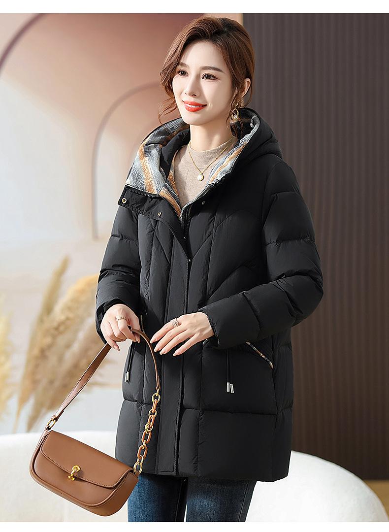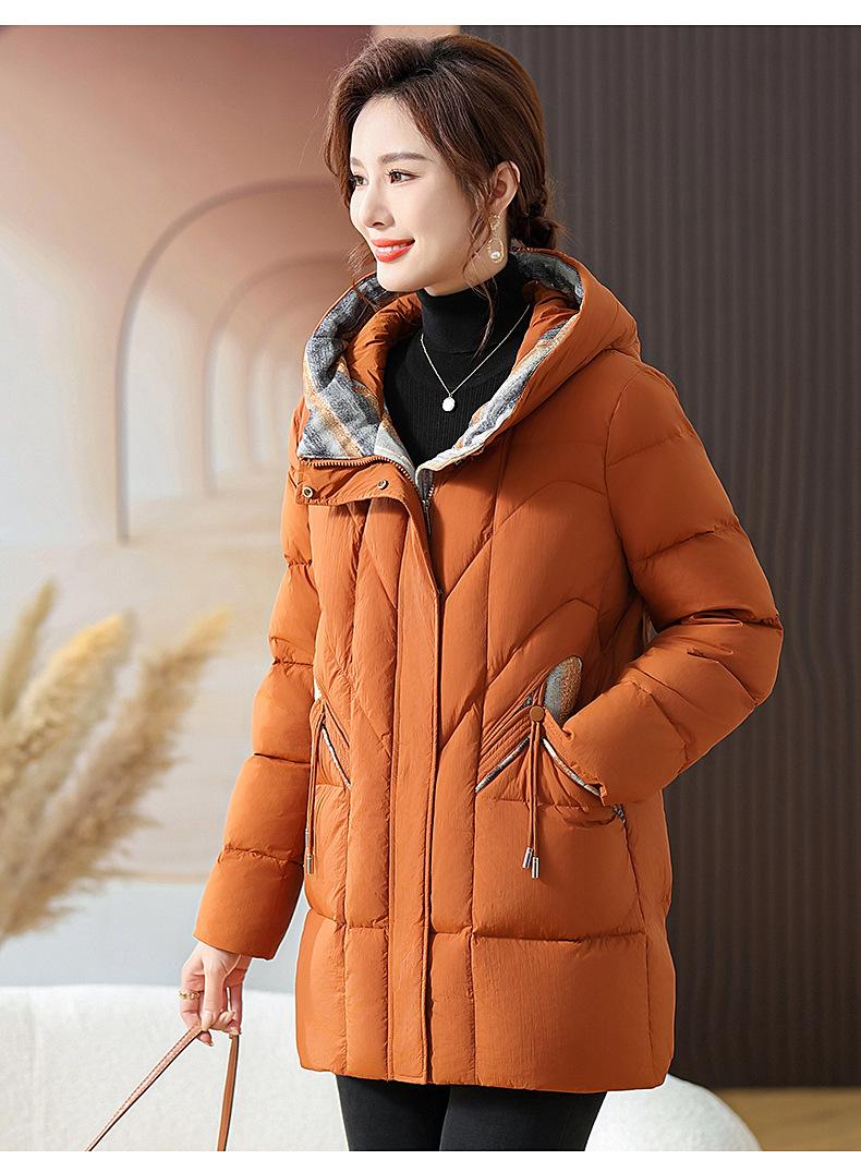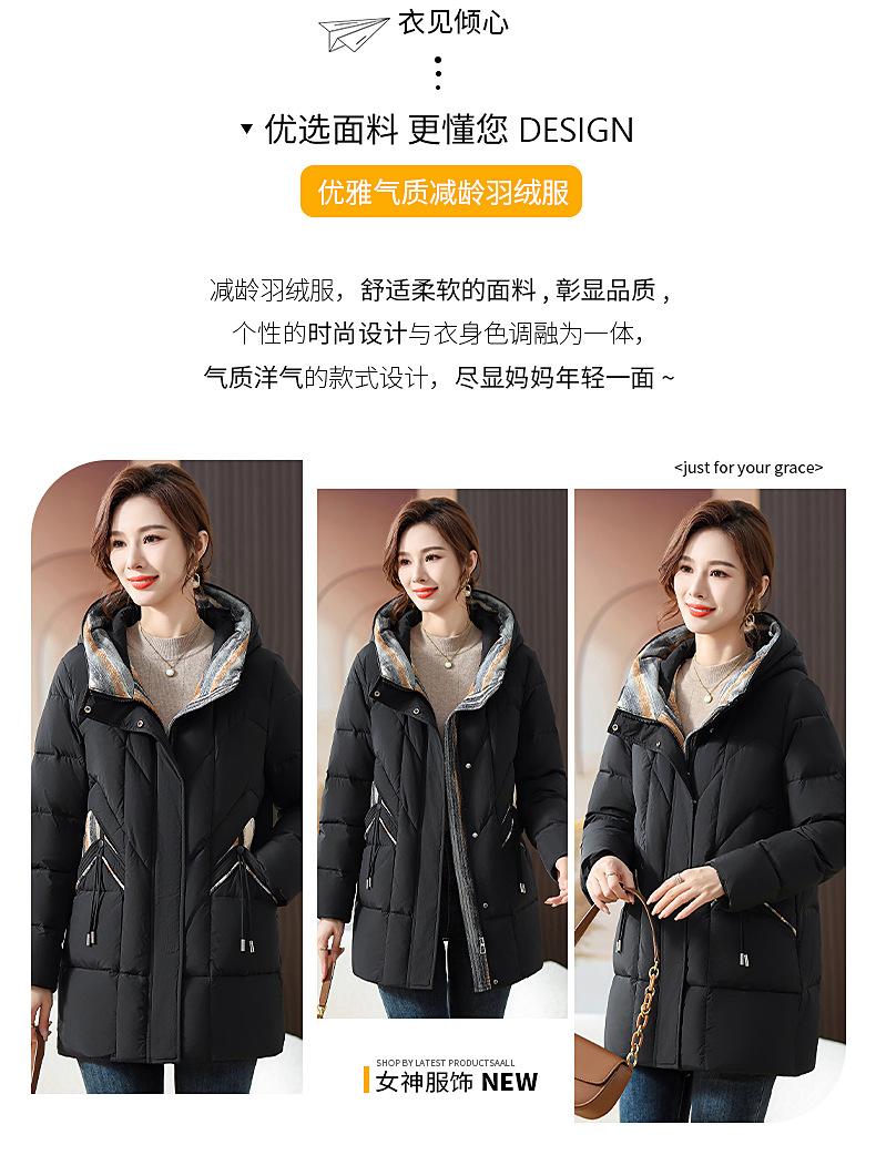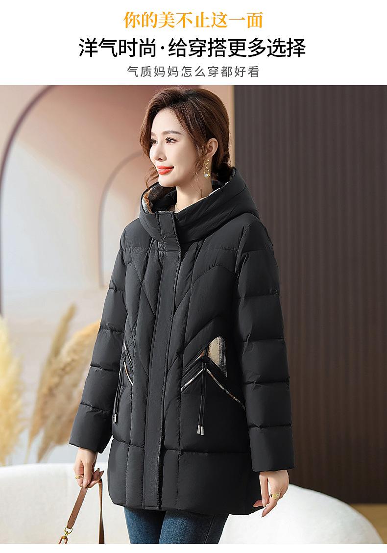 Chaqueta de Invierno para Mamá a la Moda Chaqueta de Plumón de Pato Blanco para Mujer Invierno 2023 Nuevo Estilo Occidental con Capucha de Longitud Media Chaqueta de Algodón