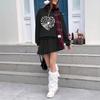 Suéter con estampado de moda elegante, holgado, informal, de estilo retro, para otoño e invierno, estilo europeo y americano, para mujer, ropa exterior con cremallera y capucha