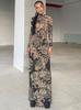 Vestido ajustado de cuello alto con perspectiva estampada de malla de moda de verano 2024 para mujer transfronteriza europea y americana