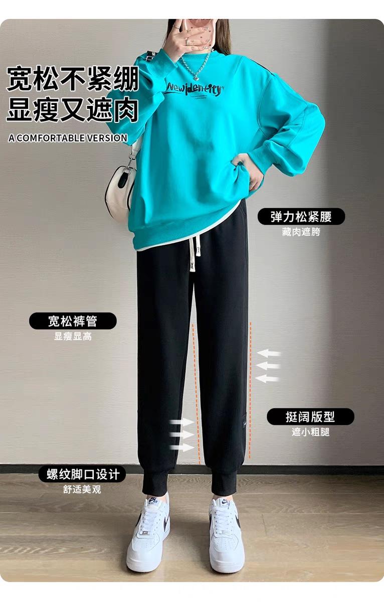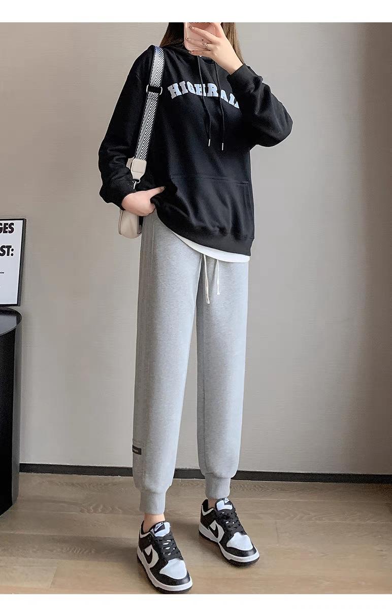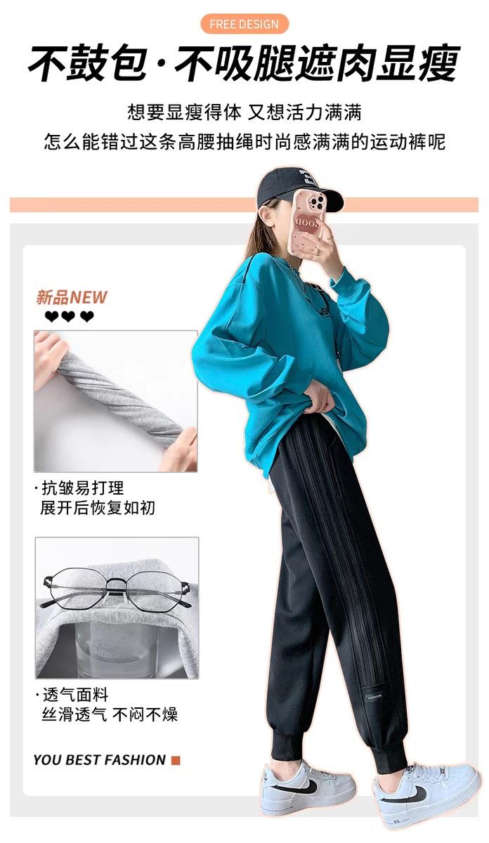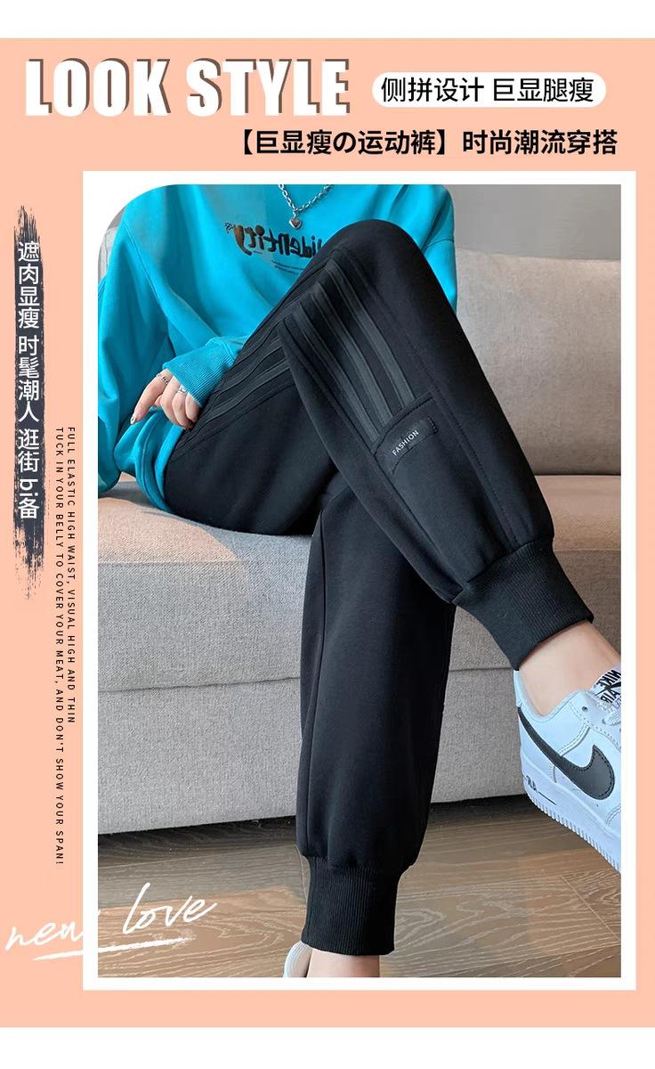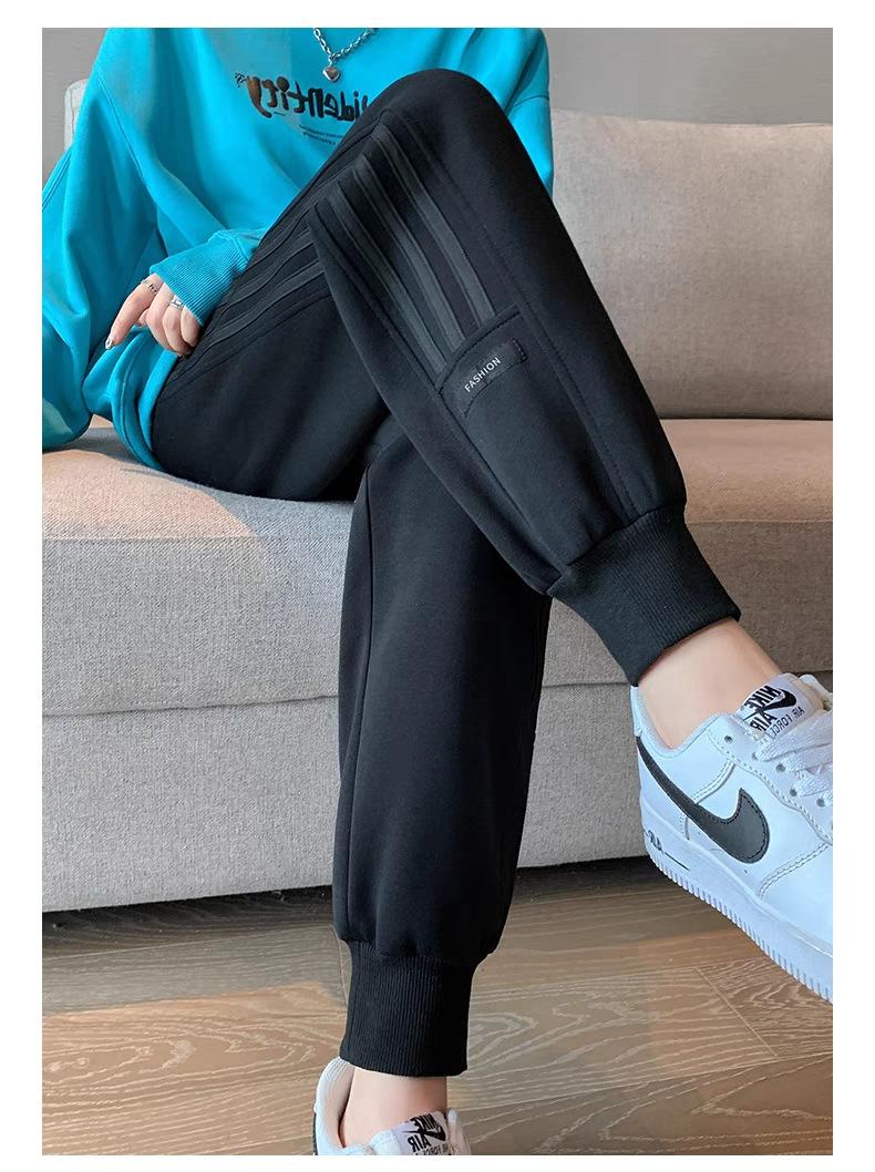 890 (Algodón compuesto chino) pantalones deportivos para mujer otoño e invierno nuevos con forro polar sueltos ins de moda de pierna ancha casuales
