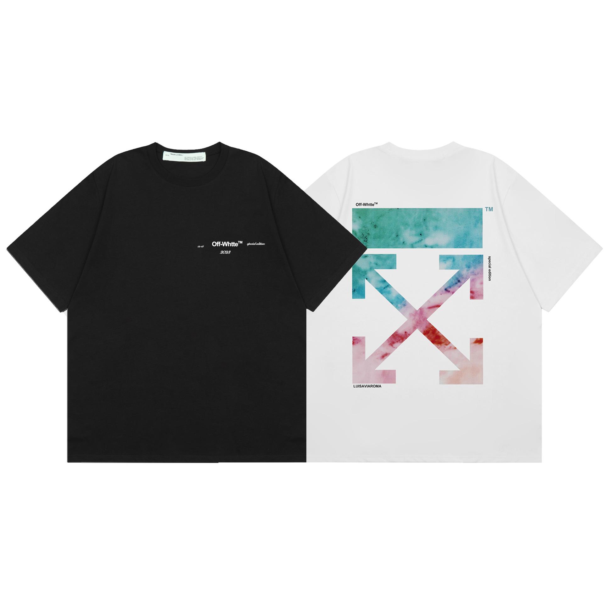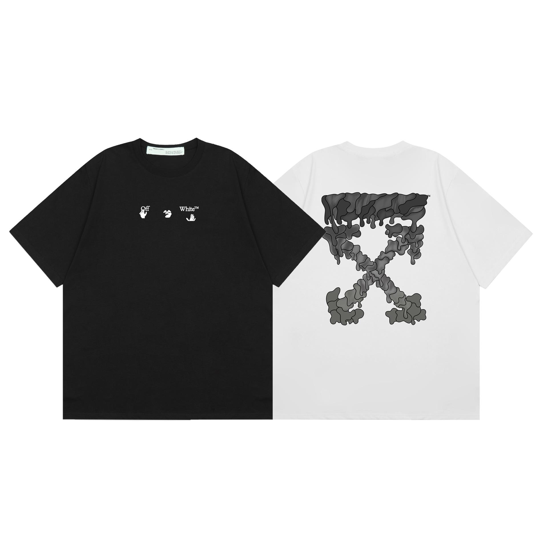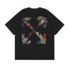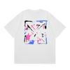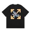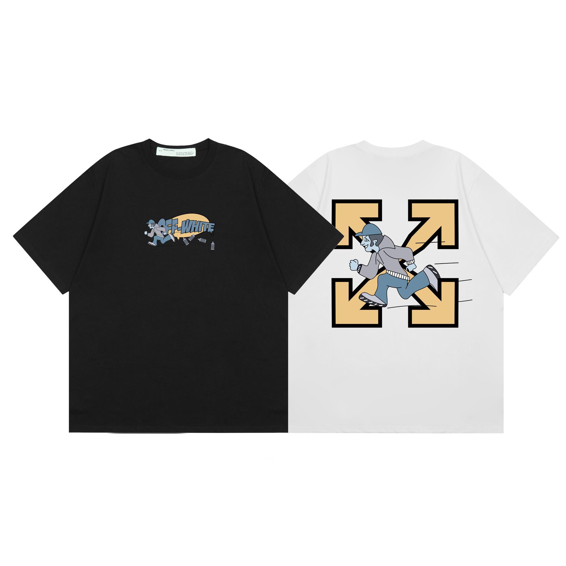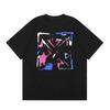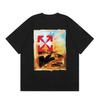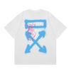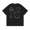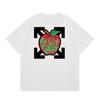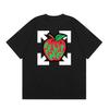 Camiseta de manga corta con cuello redondo y estampado de letras de manzana roja transfronteriza OW 2025 para hombres y mujeres con un montón de cabello