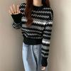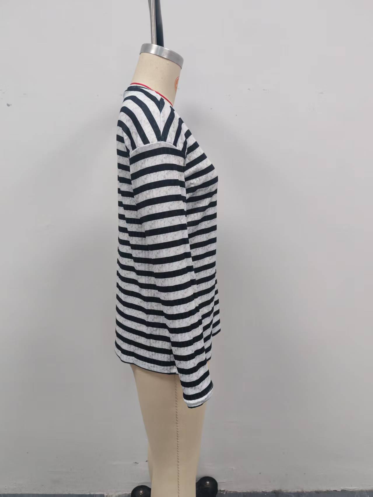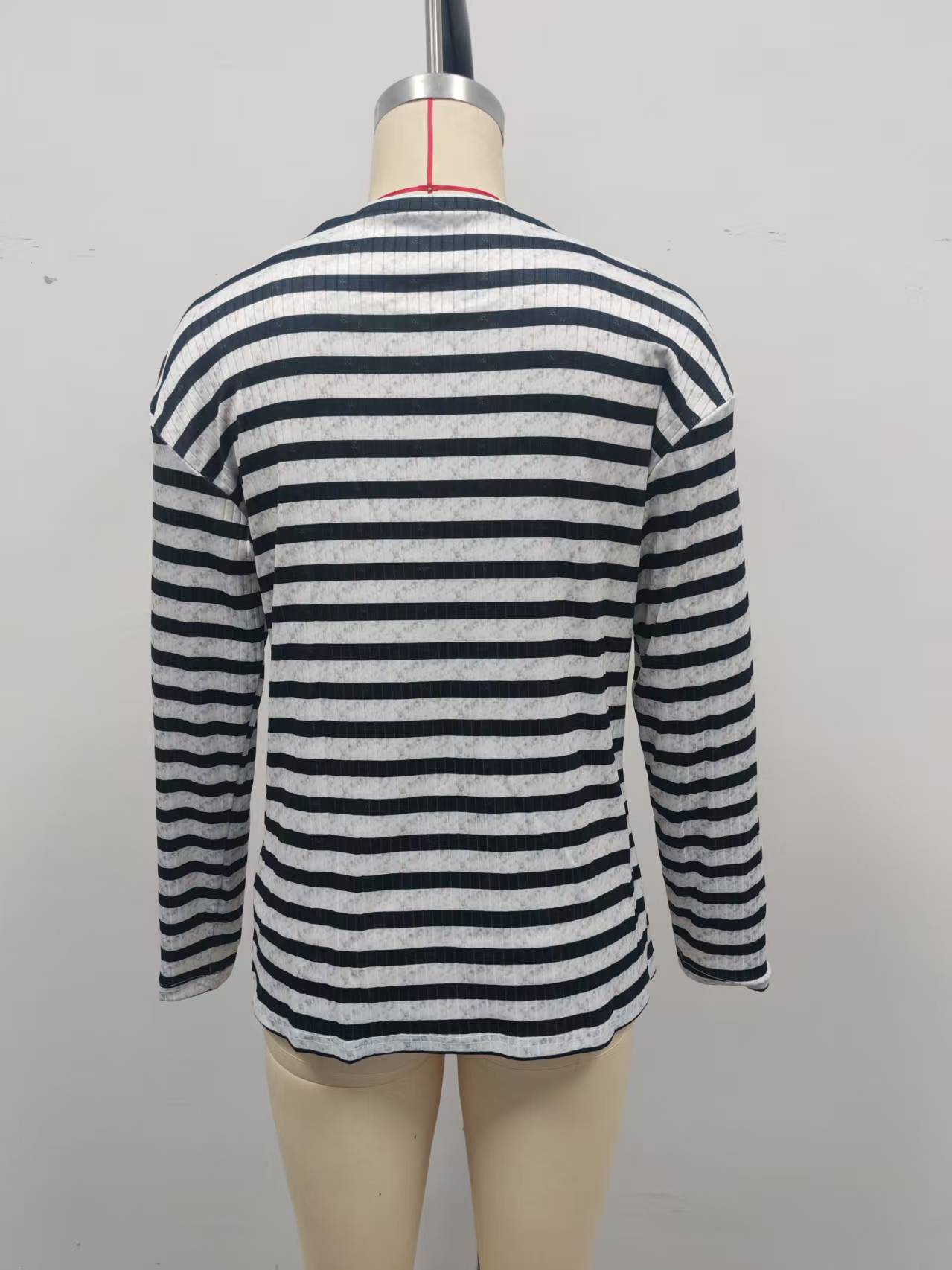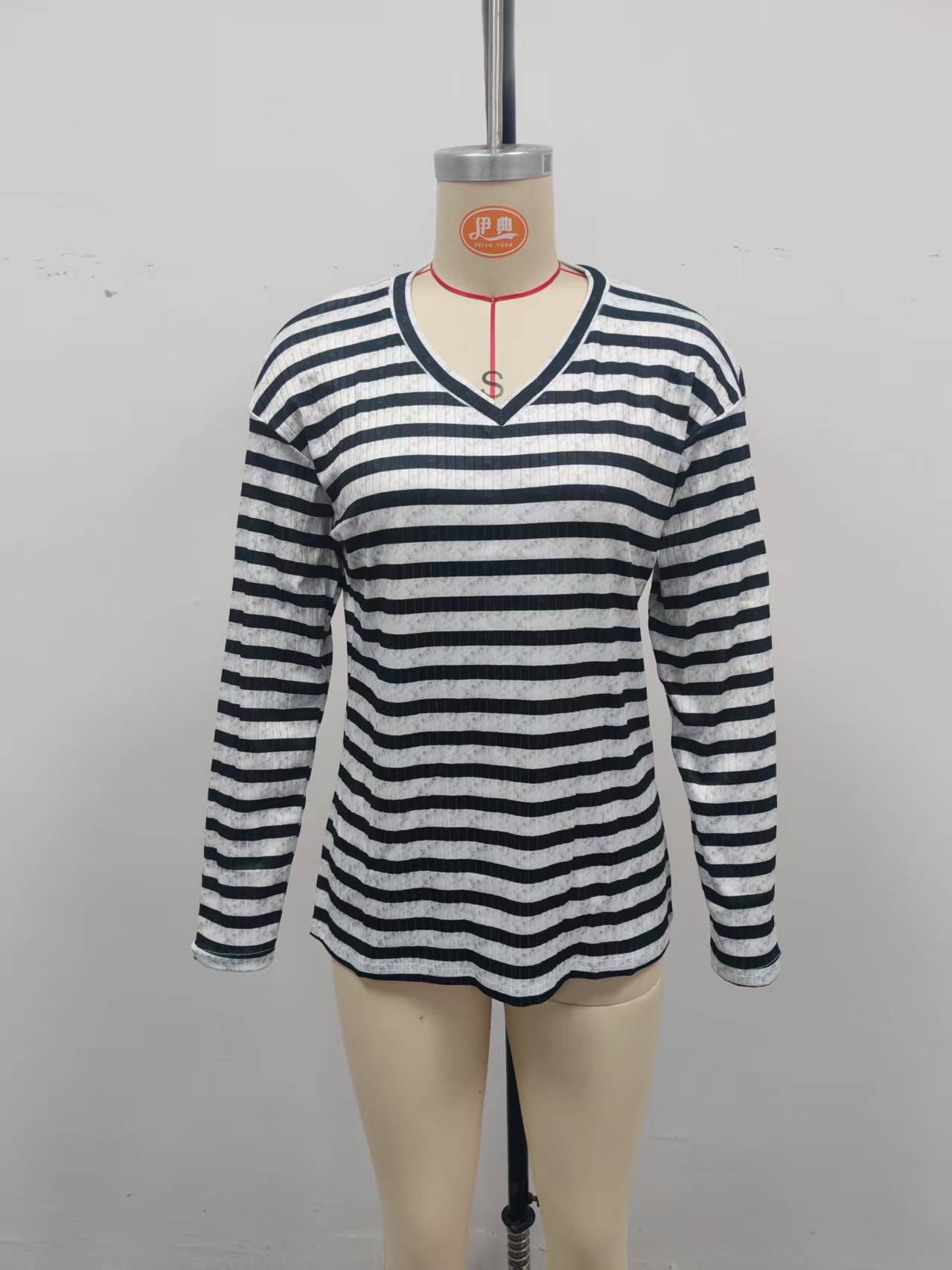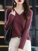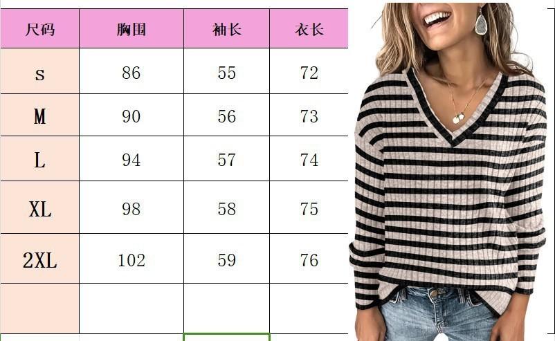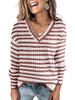 2025 Nuevo Suéter de Punto de Manga Larga con Diseño a Rayas y Bloques de Color para Otoño e Invierno, Top de Manga Larga con Cuello en V para Mujer, Moda Simple y Versátil