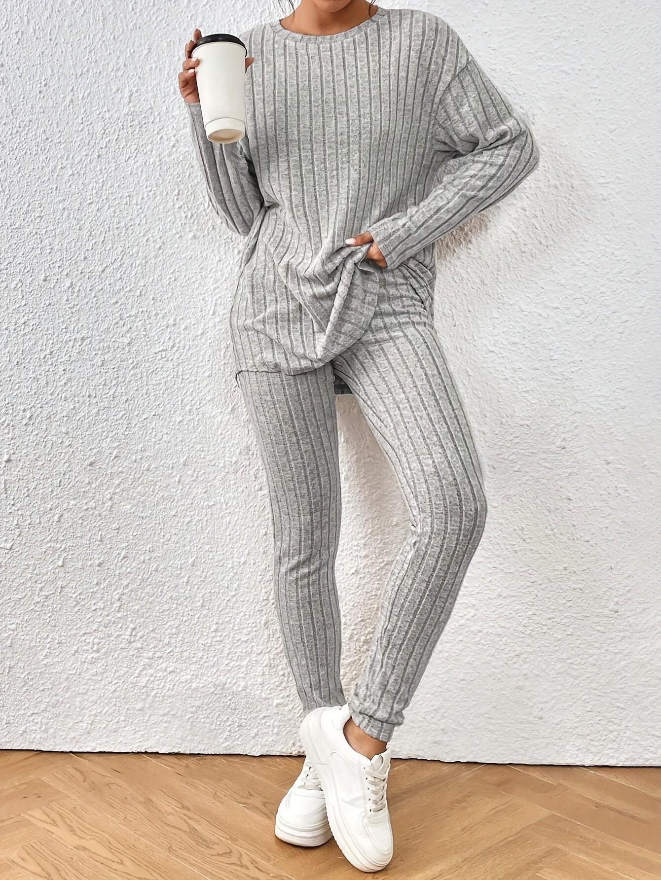Traje de moda transfronterizo europeo y americano para mujer, otoño, nuevo, informal, elegante, holgado, cuello redondo, estilo perezoso, para mujer