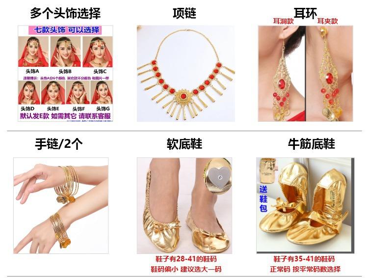 Top + pantalón + tocado + velo+Cadena de cintura+Collar+Aretes+Paquete de 2 pulseras+Zapatos de suela blanda
